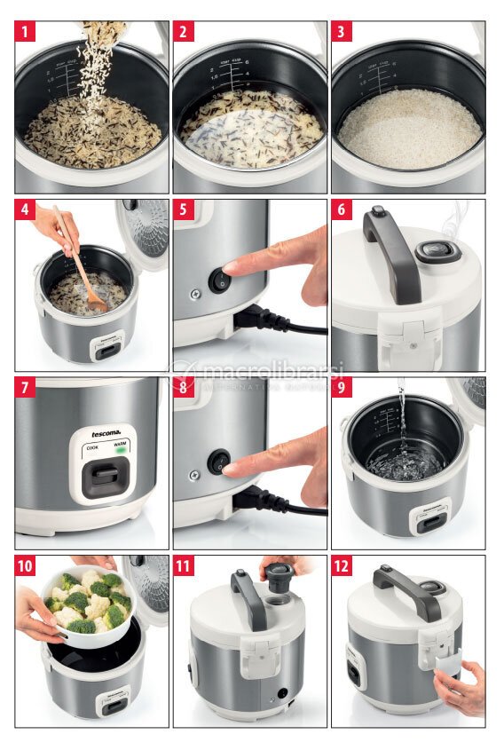Consiglio utile: Il Cuociriso può anche essere utilizzato per il trattamento termico e per il mantenimento della temperatura di carne, pesce e verdure.