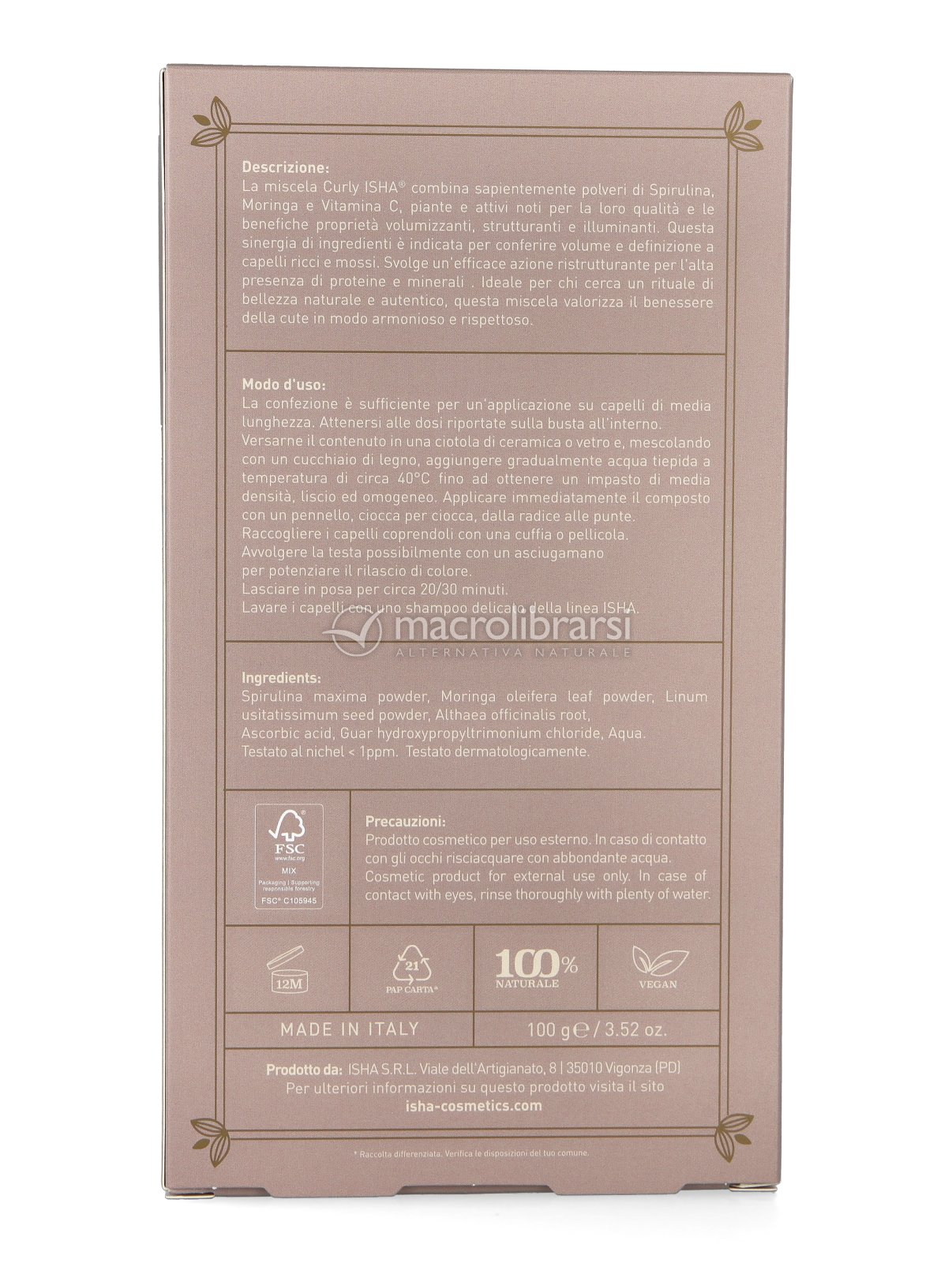 La maschera per capelli Curly di ISHA è un trattamento volumizzante 100% naturale che nutre e ristruttura la fibra capillare, lasciando i ricci definiti, morbidi e luminosi.