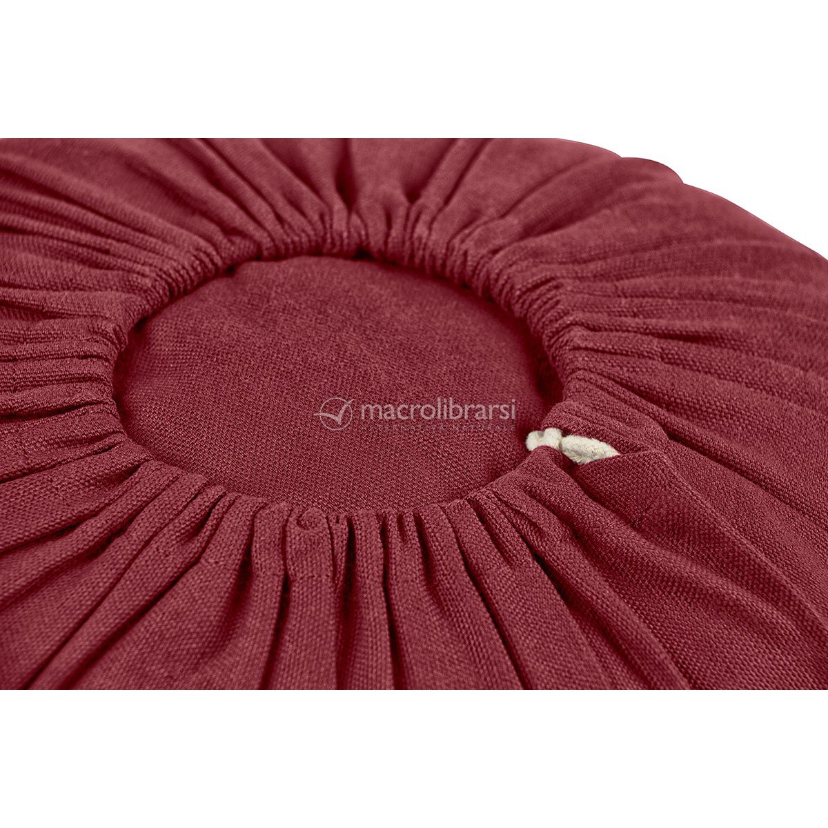 Il rivestimento è in tessuto di cotone molto robusto. Si vede che si tratta di buona qualità. L’imbottitura è naturale. Questo cuscino consente di meditare avendo un buon sostegno per la colonna vertebrale. Cuscino di ottima qualità, leggero, ma nello stesso tempo compatto, non si deforma con la seduta. Acquistato di colore Bordeaux. Finalmente un prodotto che rende possibile la meditazione nel mezzo loto anche a chi ha problemi fisici o di altro genere.