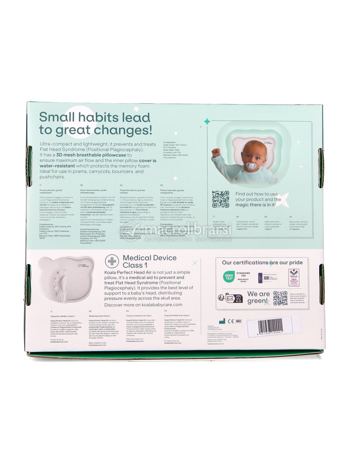 Koala Perfect Head è un cuscino per neonati a forma di koala, progettato in collaborazione con osteopati e professionisti pediatrici.
