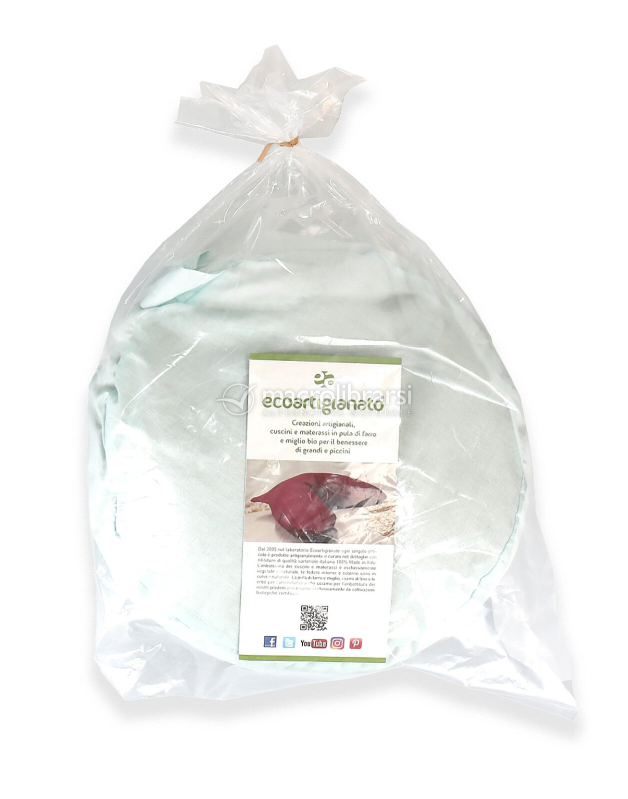 Il cuscino di Ecoartigianato è realizzato in puro cotone e riempito con pula di miglio.