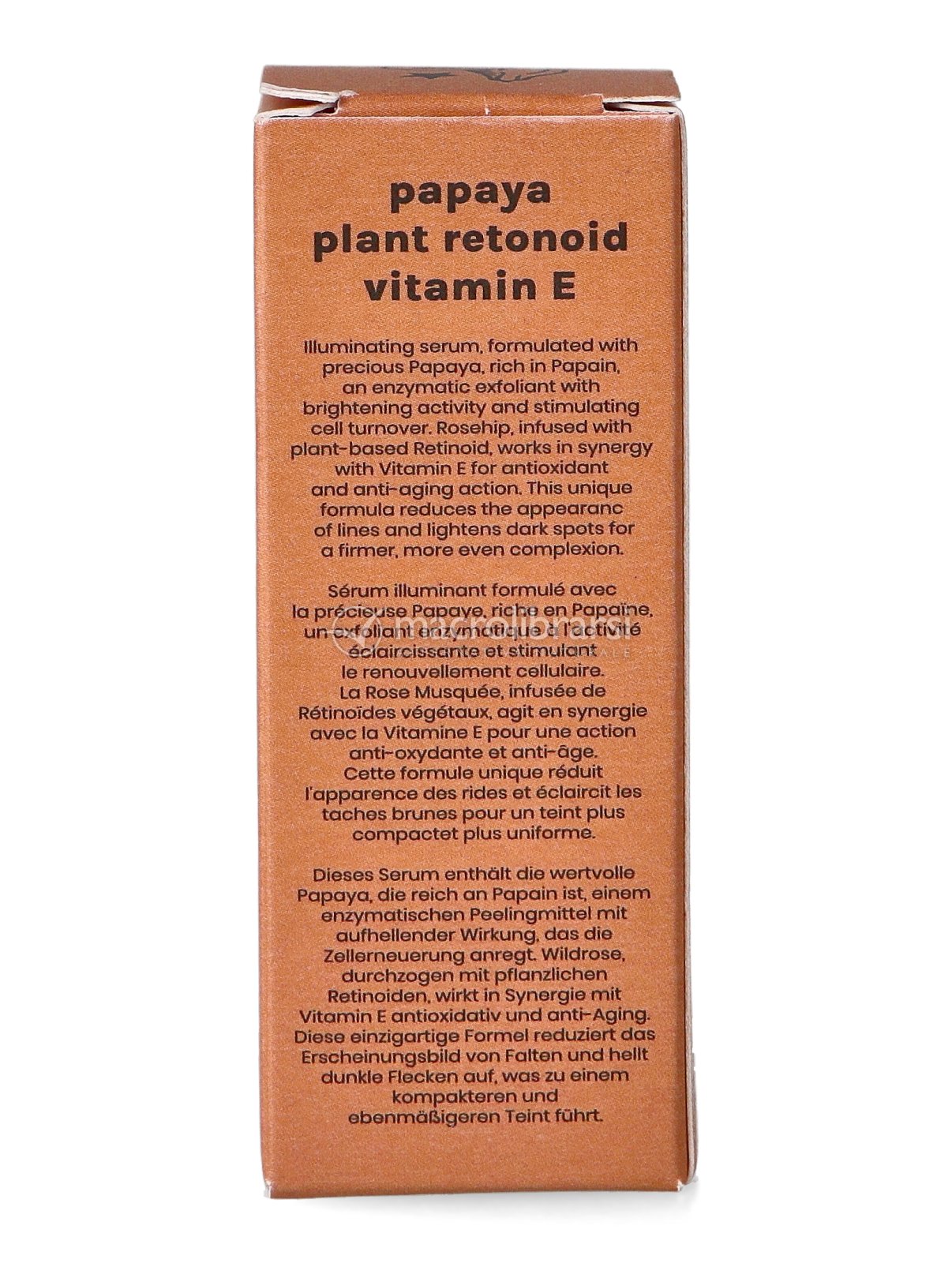 Dicarica è un siero illuminante formulato con la preziosa papaya. Un esfoliante enzimatico dall'attività schiarente e stimolante. La Rosa Mosqueta, infusa di Retinoidi vegetali, lavora in sinergia con la Vitamina E per un'azione antiossidante e anti-age.