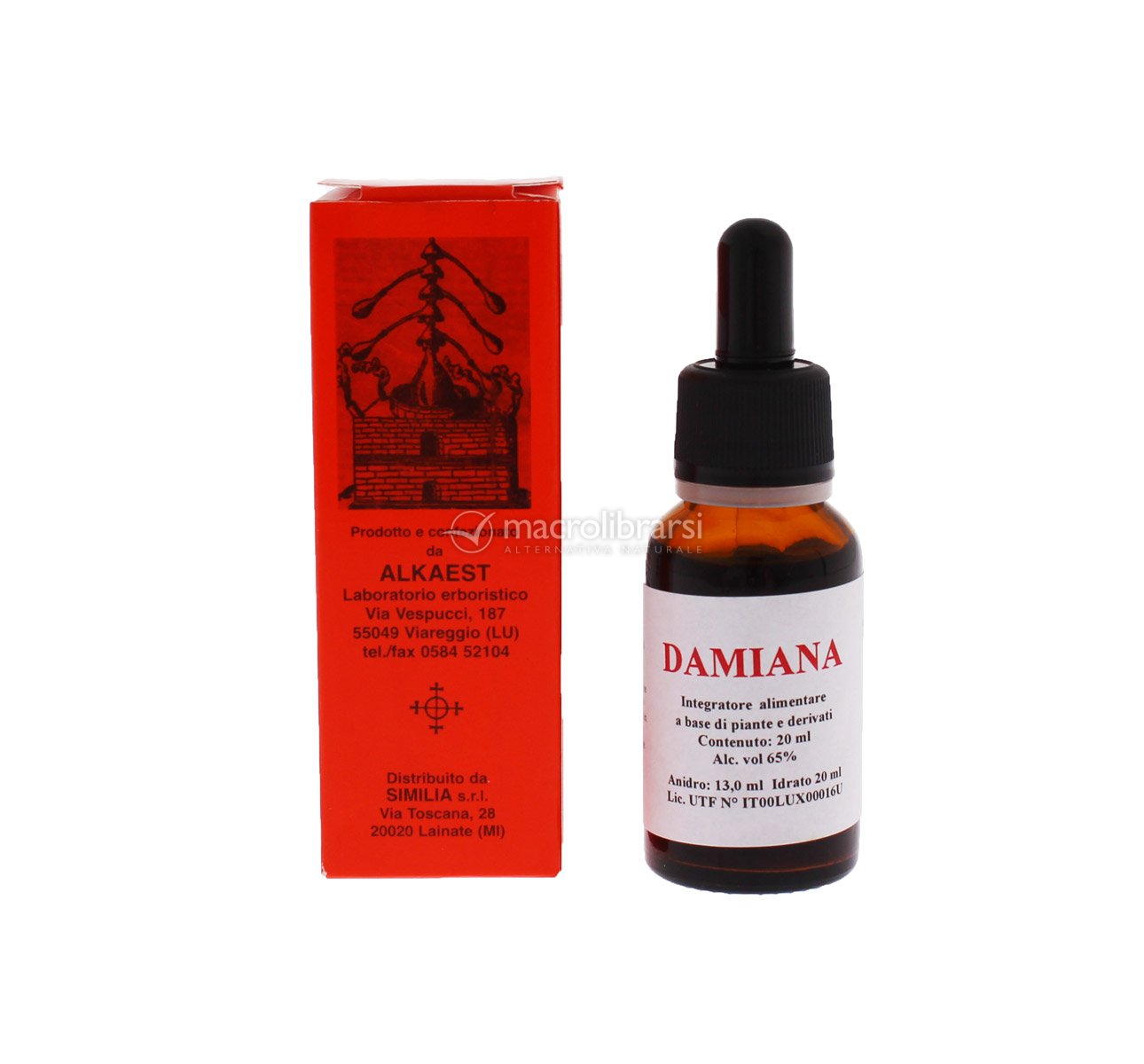 L'integratore alimentare di Damiana è un olio essenziale in alcool di tradizione spagyrica, entrambi distillati ripetutamente.