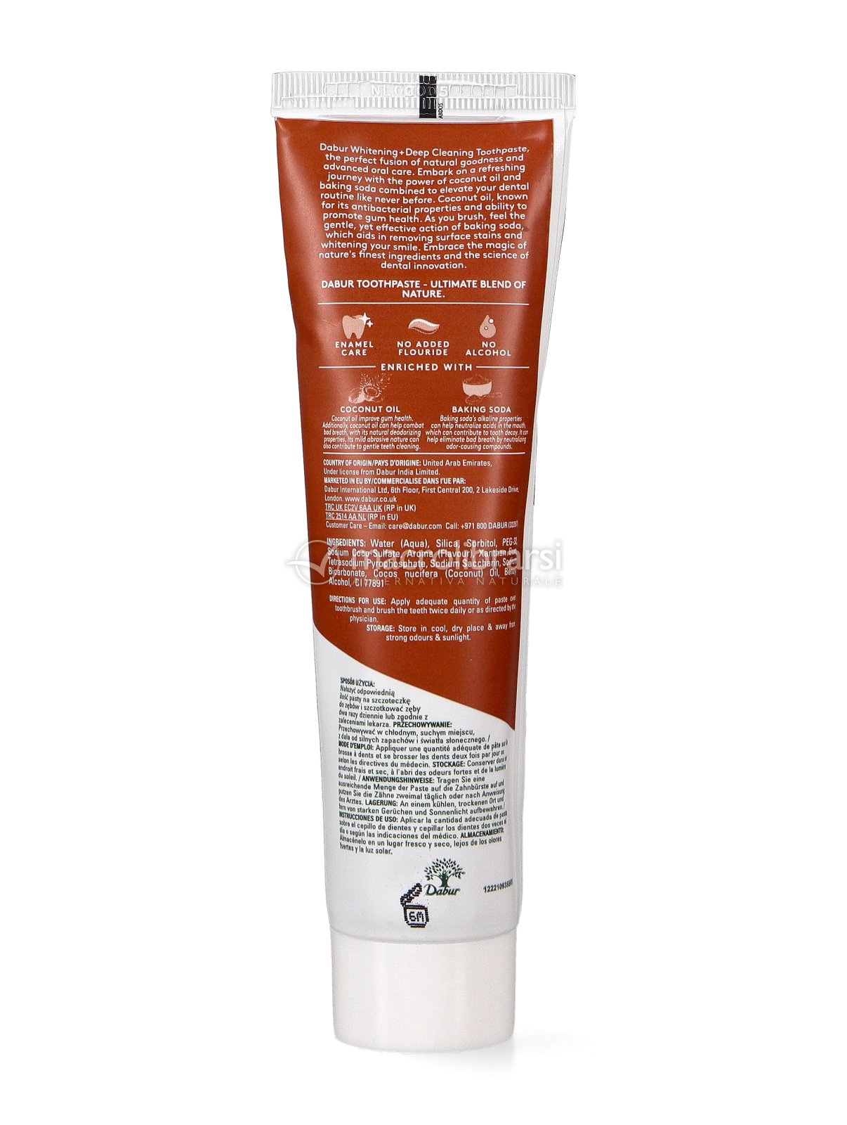 Il dentifricio Dabur unisce pulizia profonda e delicatezza, per una routine orale completa che lascia i denti puliti e l’alito più fresco. In più, la combinazione cocco + bicarbonato è perfetta per chi cerca una formula essenziale ma efficace, con un tocco naturale.