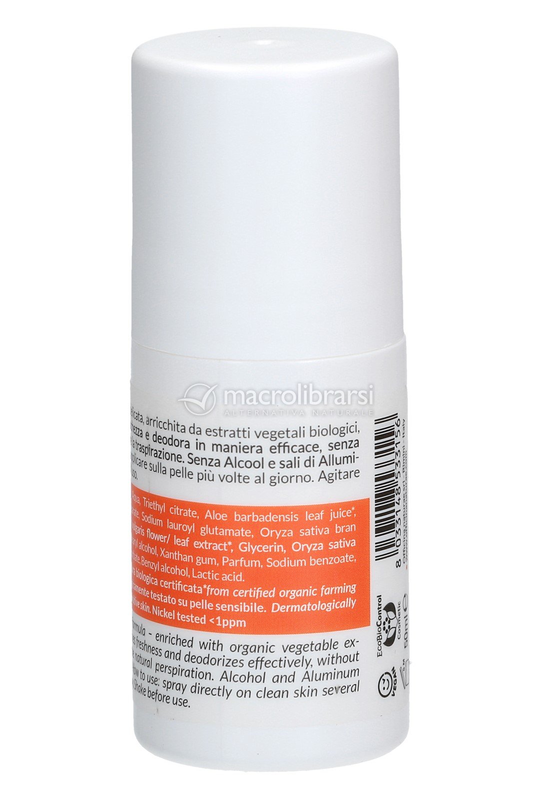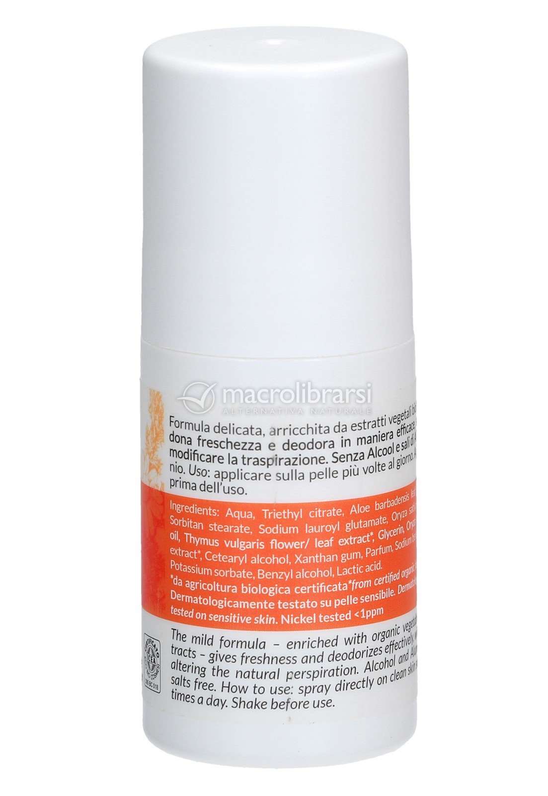 In pratico deodorante Roll-on delicato sulla pelle, arricchito dagli estratti vegetali biologici di Timo e Riso, dall’azione calmante ed emolliente.