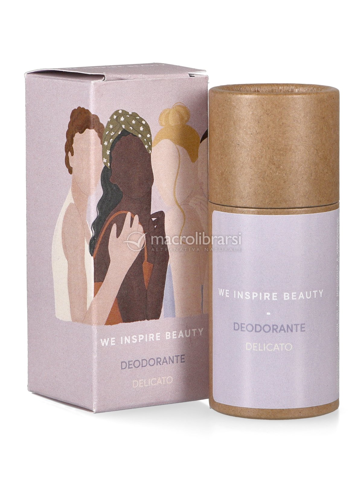 Il Deodorante Delicato in stick è contenuto in un pratico ed ecologico tubo di cartone e il suo profumo rimane fresco e delicato sulla pelle poichè è completamente ipoallergenico e biocompatibile.