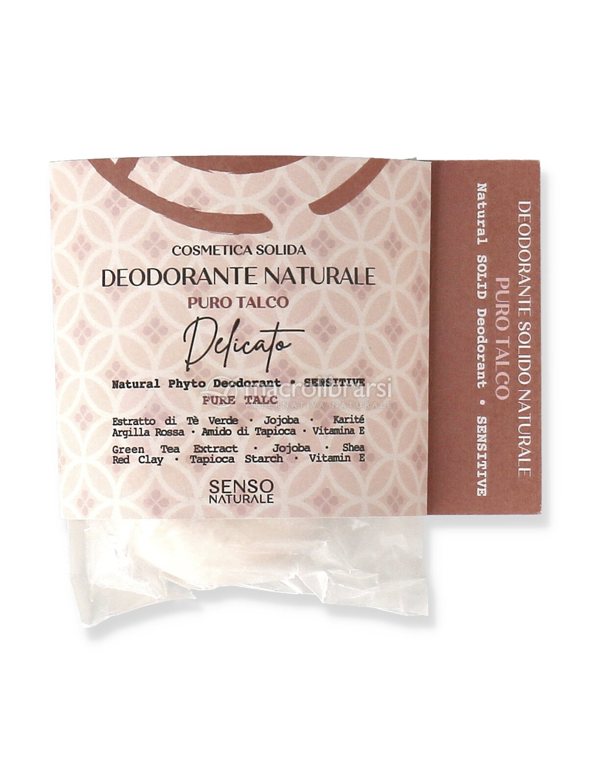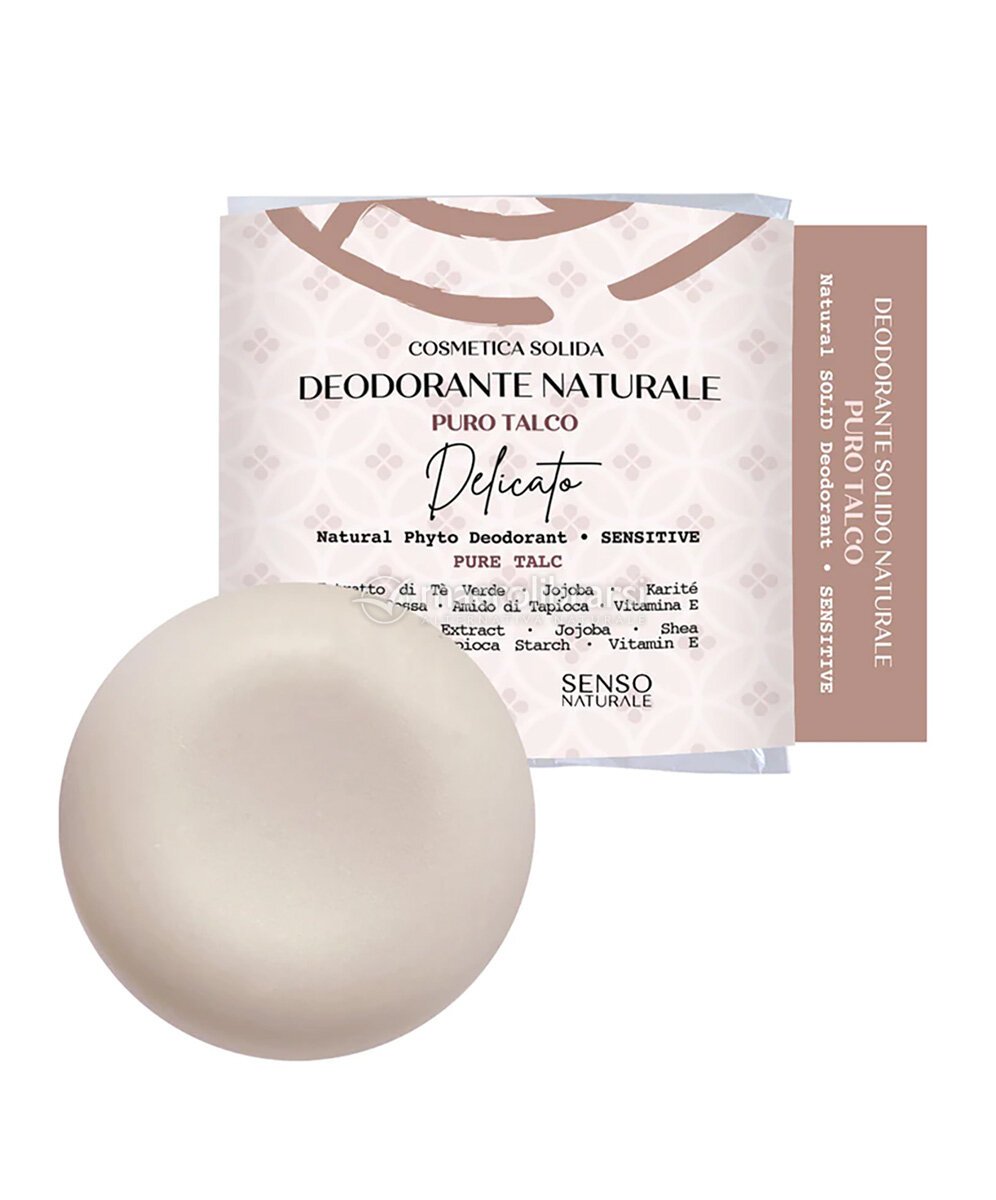 Deodorante solido naturale dal profumo delicato di talco, la soluzione efficace e senza sprechi per avere ascelle protette per tutta la giornata, anche quelle più delicate e sensibili.