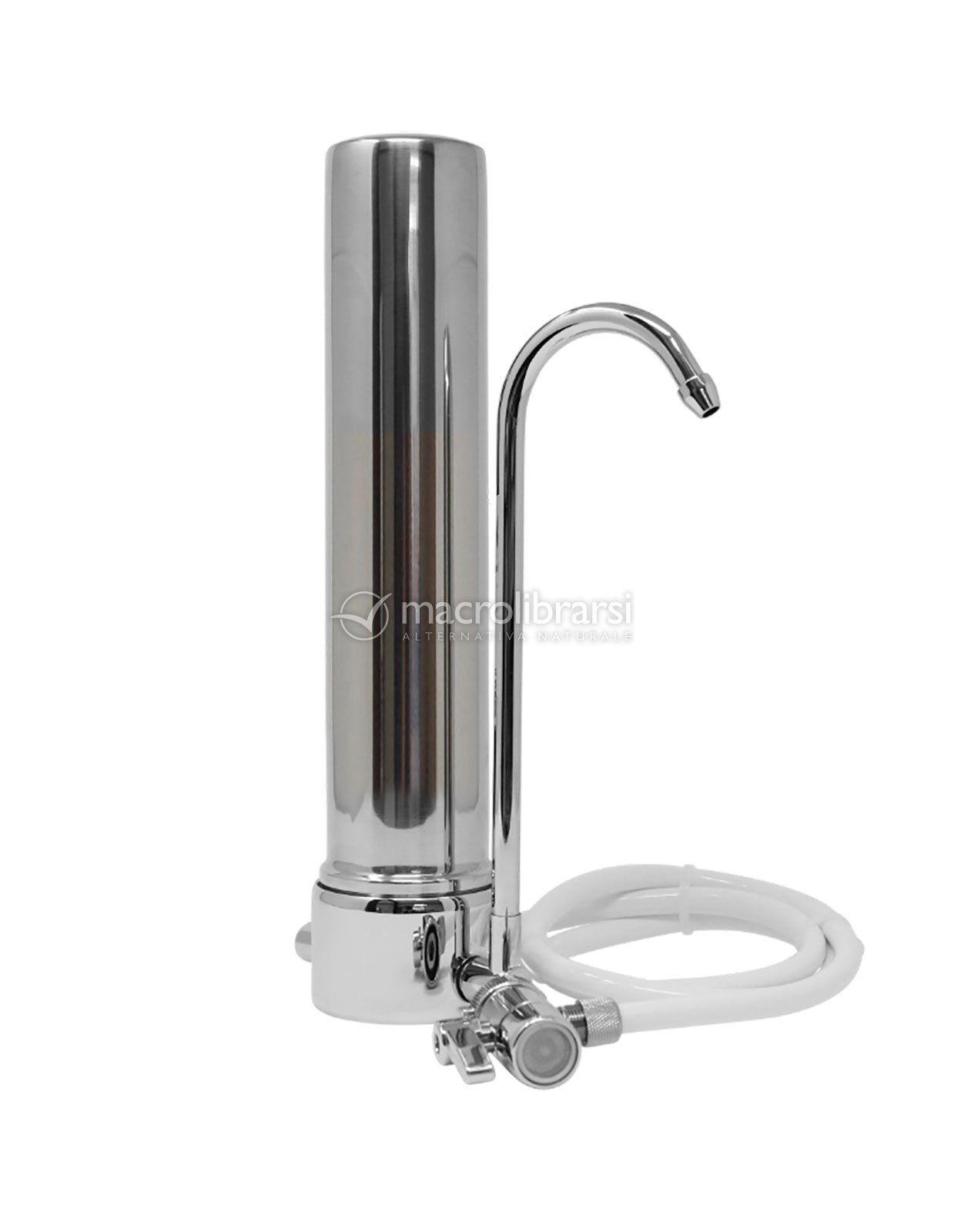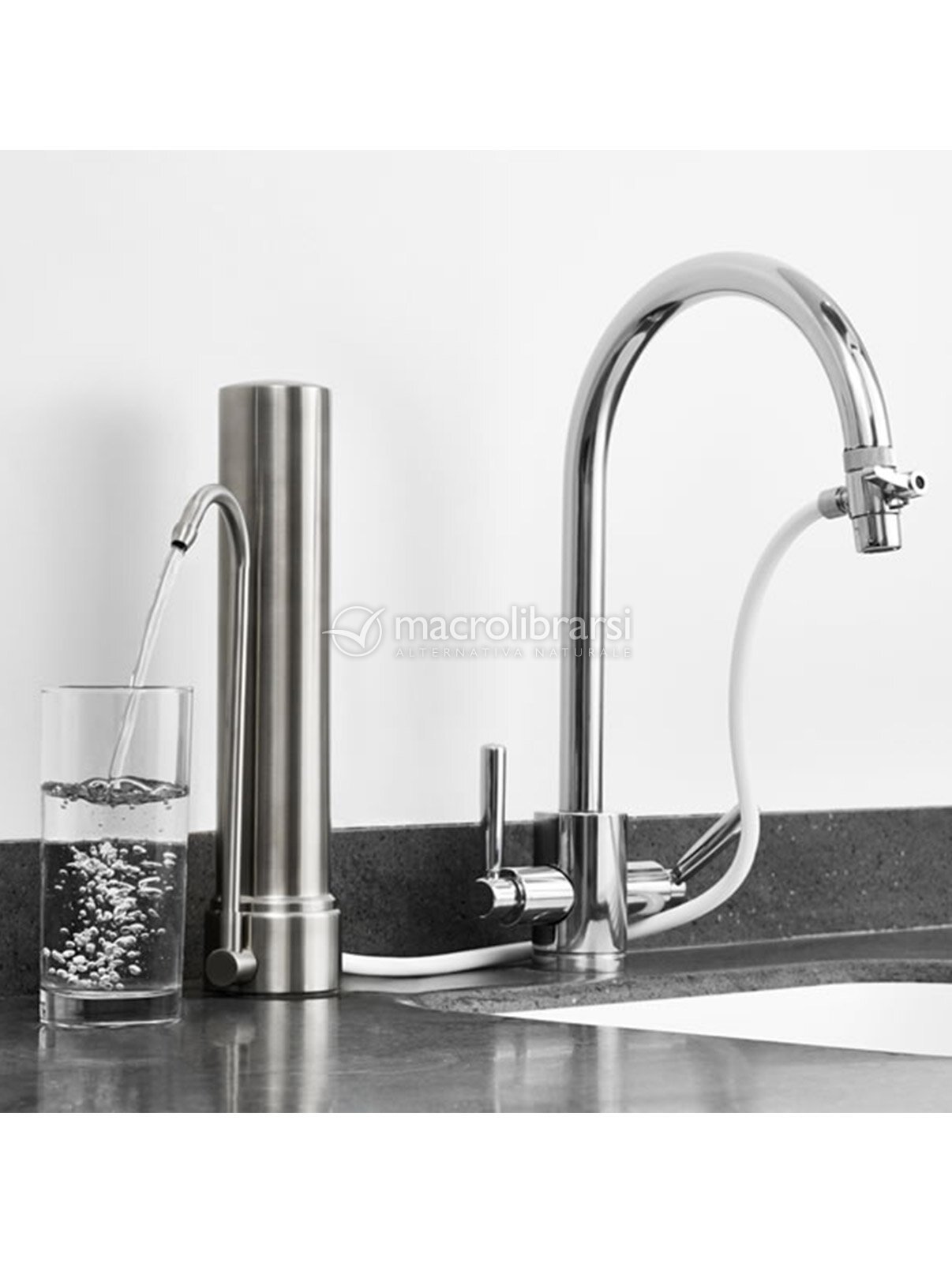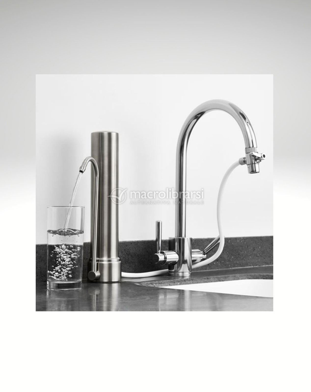 Con una valvola deviatrice da fissare sul rubinetto esistente si può derivare l’acqua e purificarla direttamente nella candela, posizionata nell’unità, composta di ceramica e carbone attivo compattato. L’acqua filtrata uscirà dal beccuccio a collo di cigno orientabile.