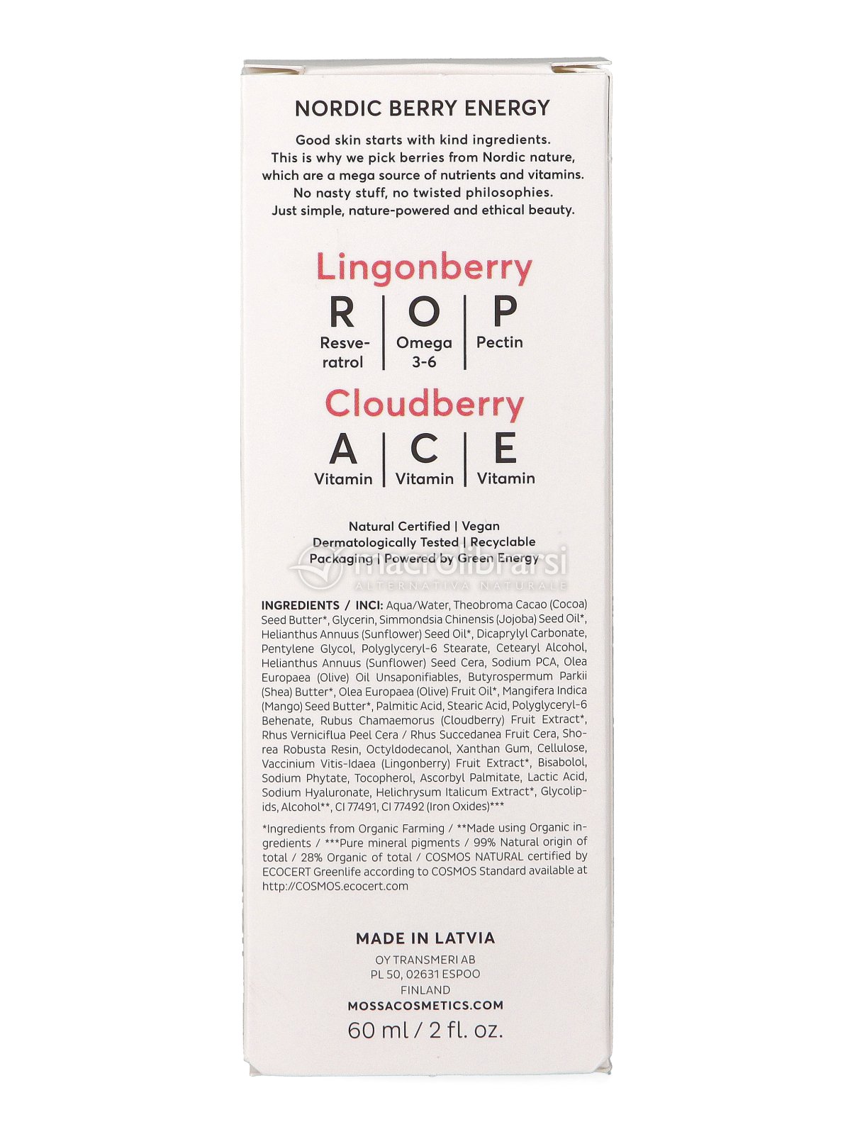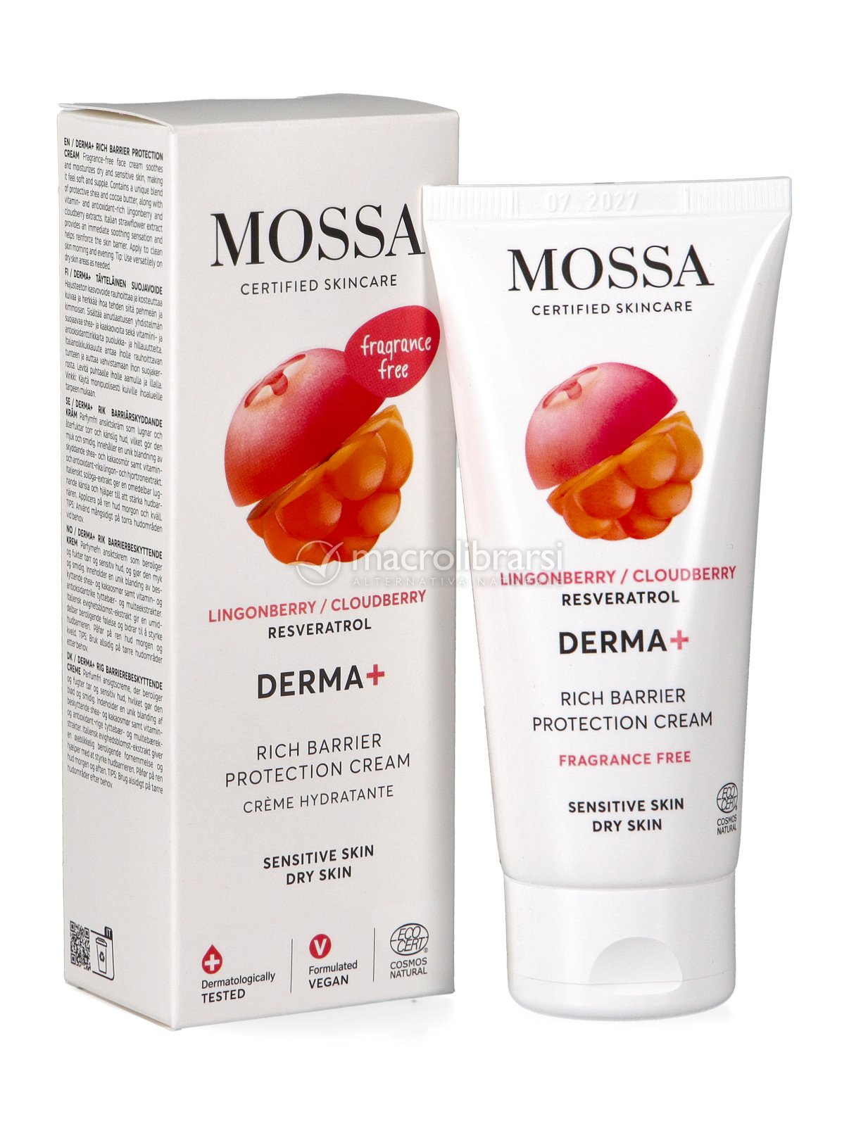 La formula della Crema Ricca Protettiva Derma+ di Mossa combina il potere nutriente del burro di karité e del burro di cacao con gli estratti di mirtillo rosso nordico e camemoro, naturalmente ricchi di vitamine e antiossidanti, per contrastare i segni dello stress ossidativo.