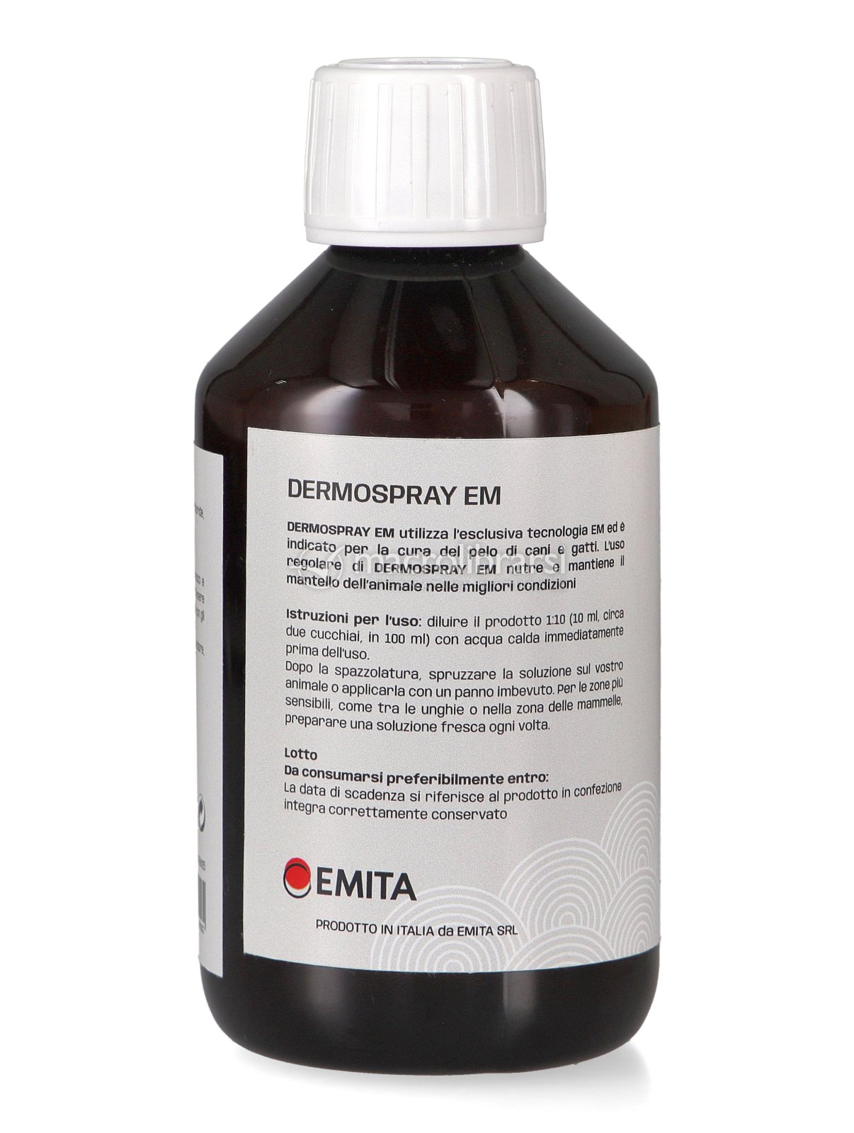 Dermospray-EM di Tiggypet è una soluzione per la cura del pelo di cani e gatti, formulata con la tecnologia dei Microrganismi Effettivi (EM), una combinazione di oltre 80 specie di batteri benefici.