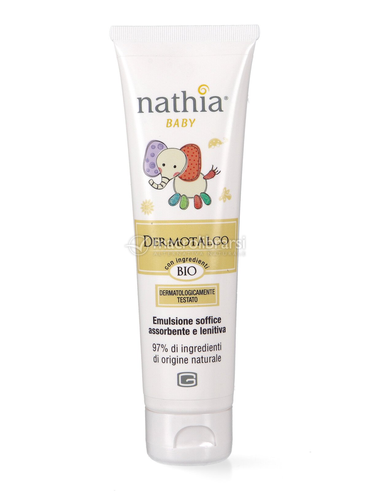 Il DermoTalco Nathia è una miscela di attivi la cui sinergia rende il prodotto altamente compatibile con la naturale traspirazione cutanea del bambino e, allo stesso tempo, efficace nel lenire arrossamenti e irritazioni frequenti nel piccolo appena nato.