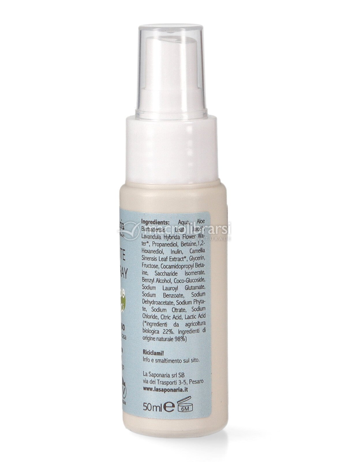 La sua formula infatti non ha bisogno di risciacquo ed è a base di Gel di Aloe bio, lenitivo e rinfrescante, idrolato di Lavanda bio, equilibrante e purificante ed estratto glicerico di the verde bio, un potente antiossidante, rivitalizzante e protettivo.