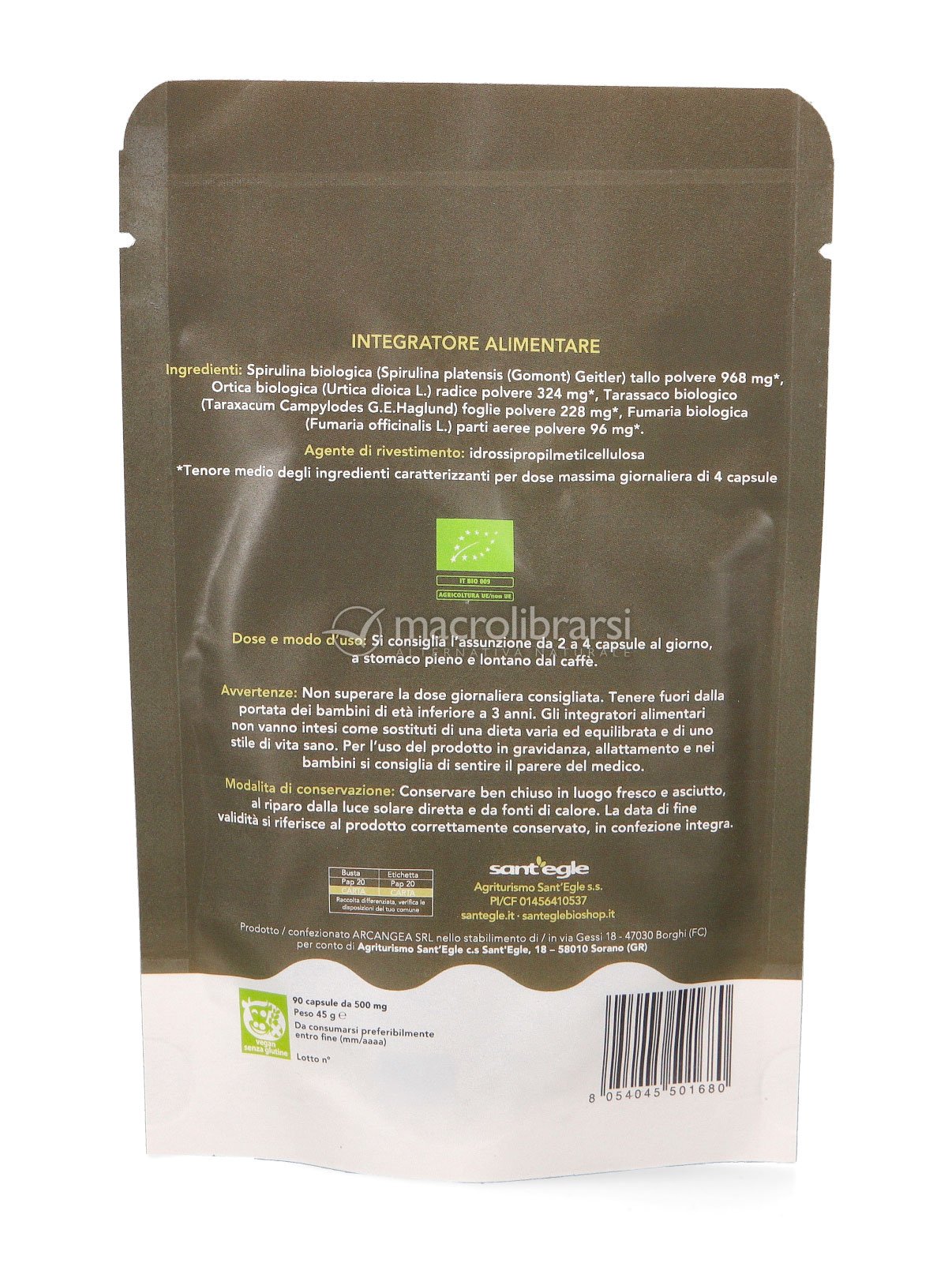 | Disclaimer | Non superare la dose giornaliera consigliata. Gli integratori alimentari non vanno intesi come sostituti di una dieta variata ed equilibrata. Tenere fuori dalla portata dei bambini al di sotto dei tre anni. Non utilizzare in gravidanza e nei bambini o comunque per periodi prolungati senza sentire il parere del medico. Conservare in luogo asciutto e lontano da fonti di calore. Richiudere la confezione dopo l'uso. Macrolibrarsi ricorda l'importanza di seguire uno stile di vita sano e un'alimentazione variata ed equilibrata. |