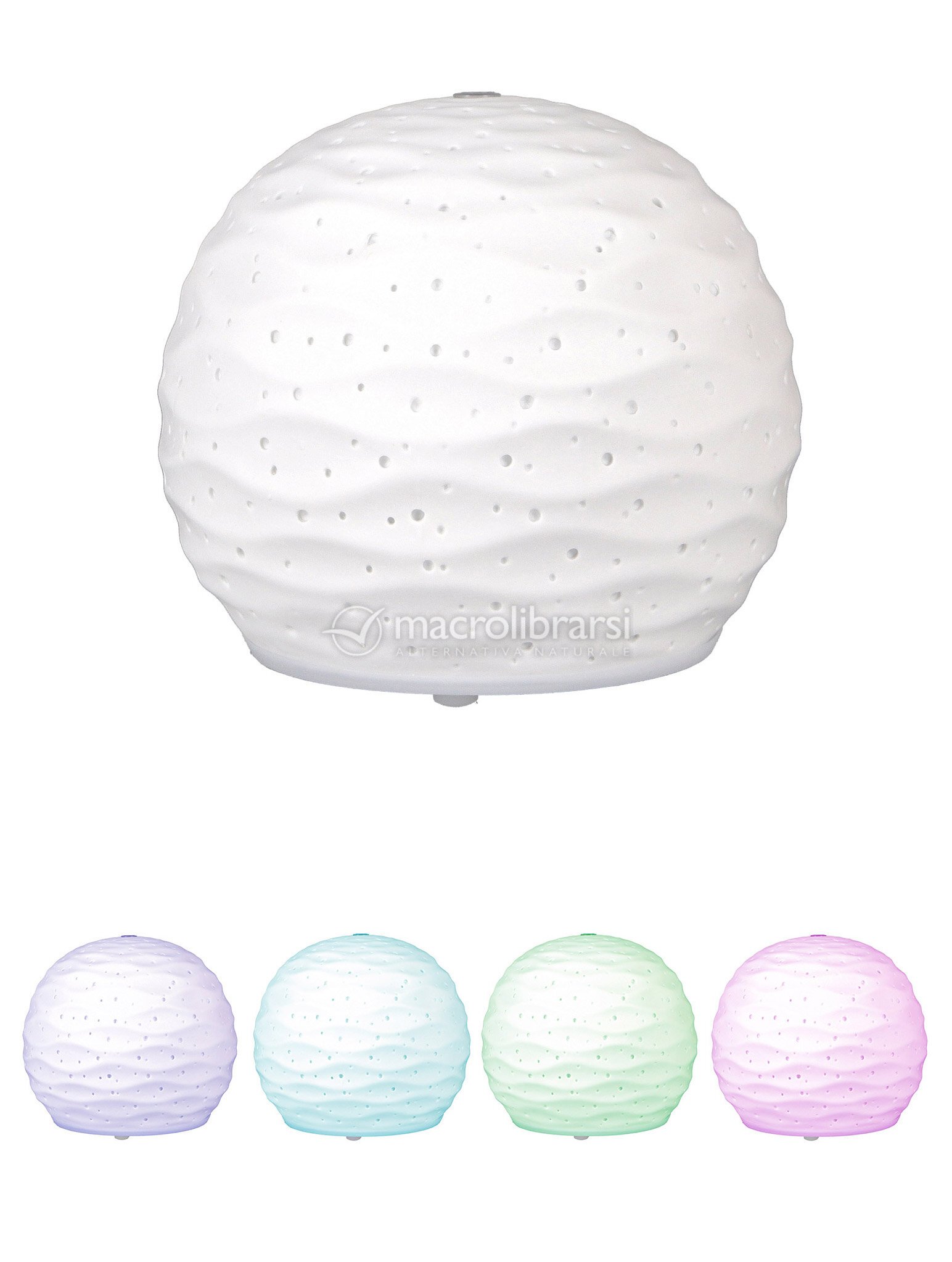 Il diffusore è dotato di una luce led che cambia colore in modo graduale. I fori della ceramica, lavorati a mano, diffondono la luce delicatamente rendendo il prodotto ideale anche per l'illuminazione notturna.