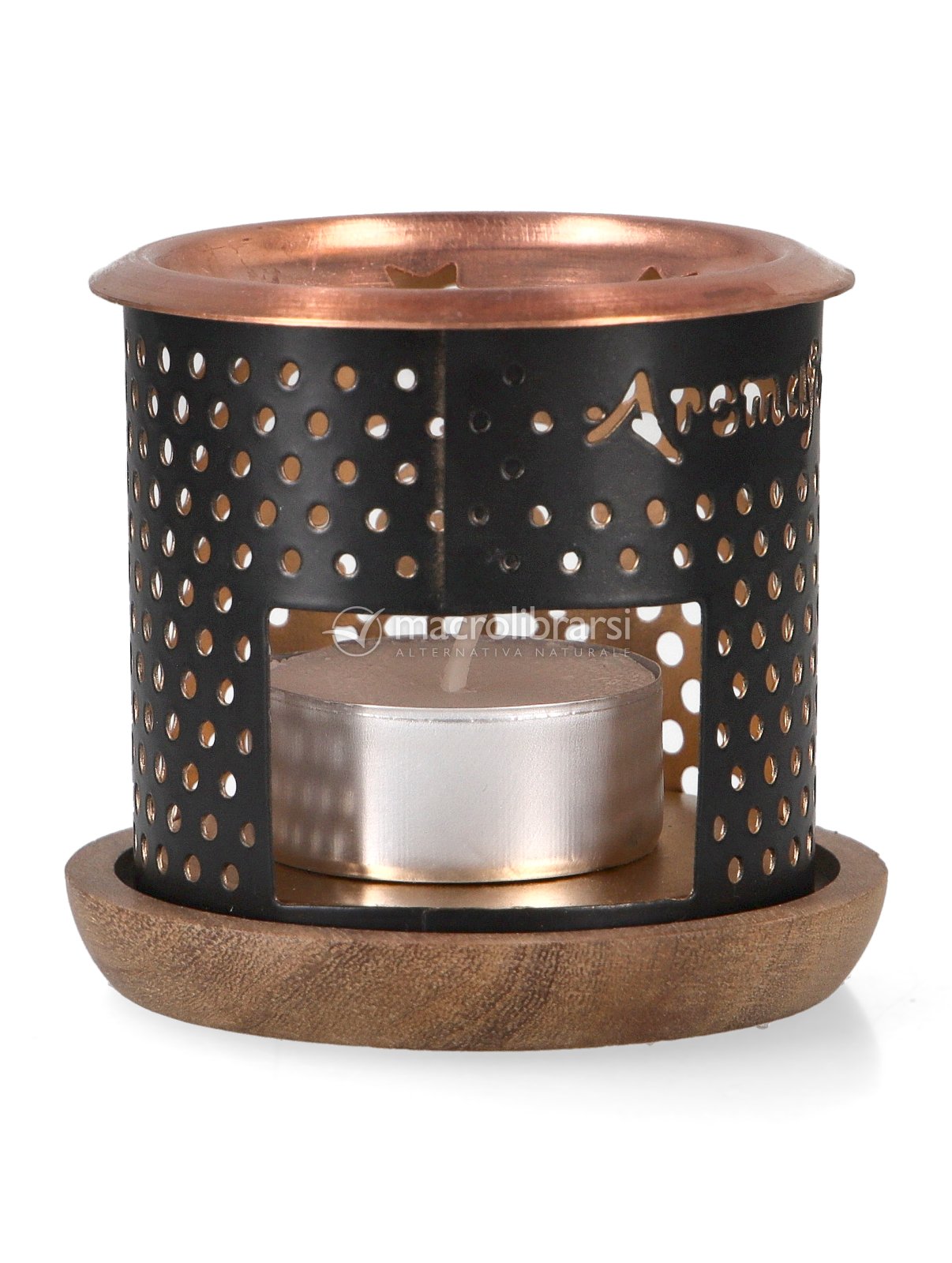 Bruciatore con base in legno e piattino rame + 1 lumino + 2 mattoncini alla Salvia