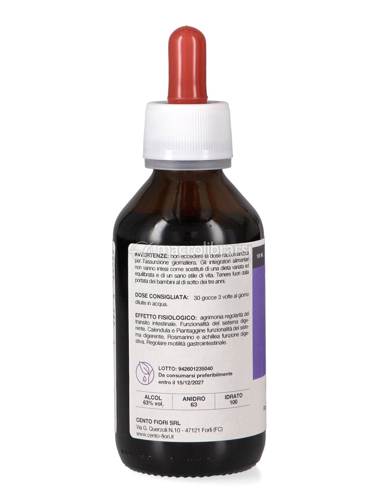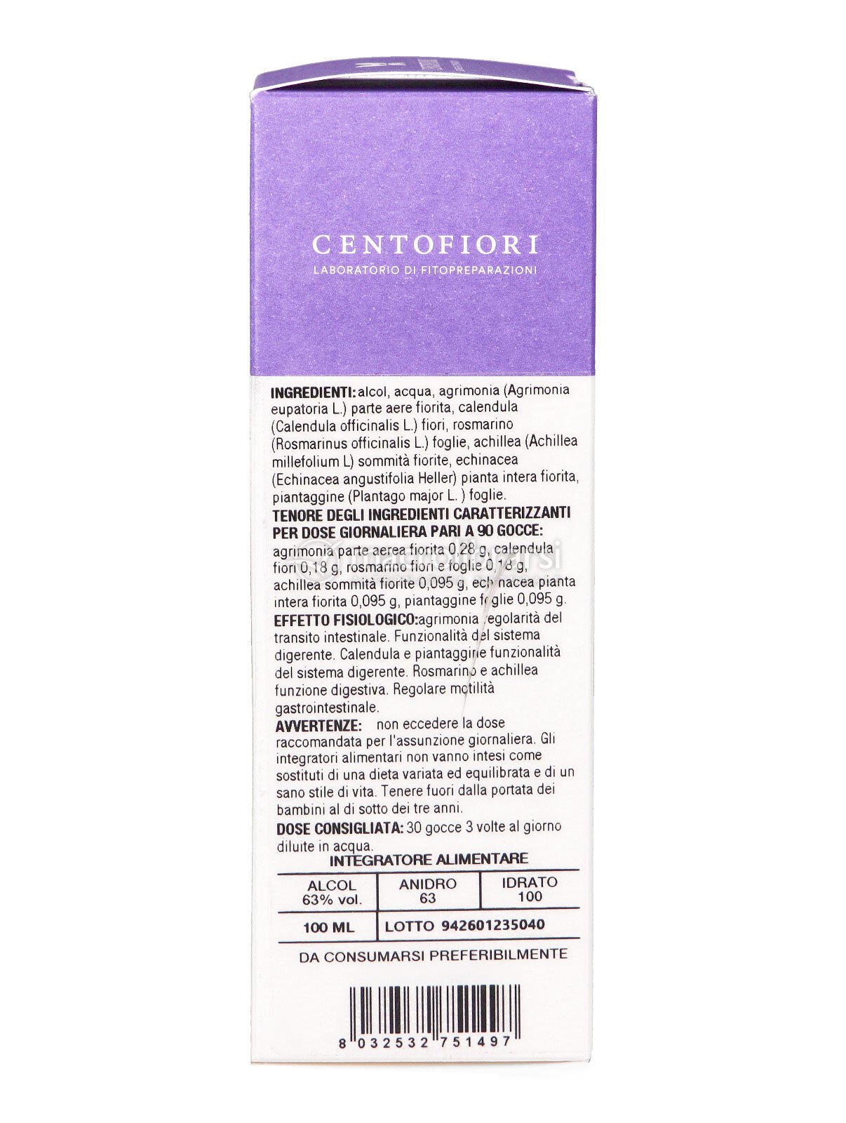 Disbios di Centofiori è una miscela di soluzioni idroalcoliche studiata per il benessere intestinale. Contiene estratti di: