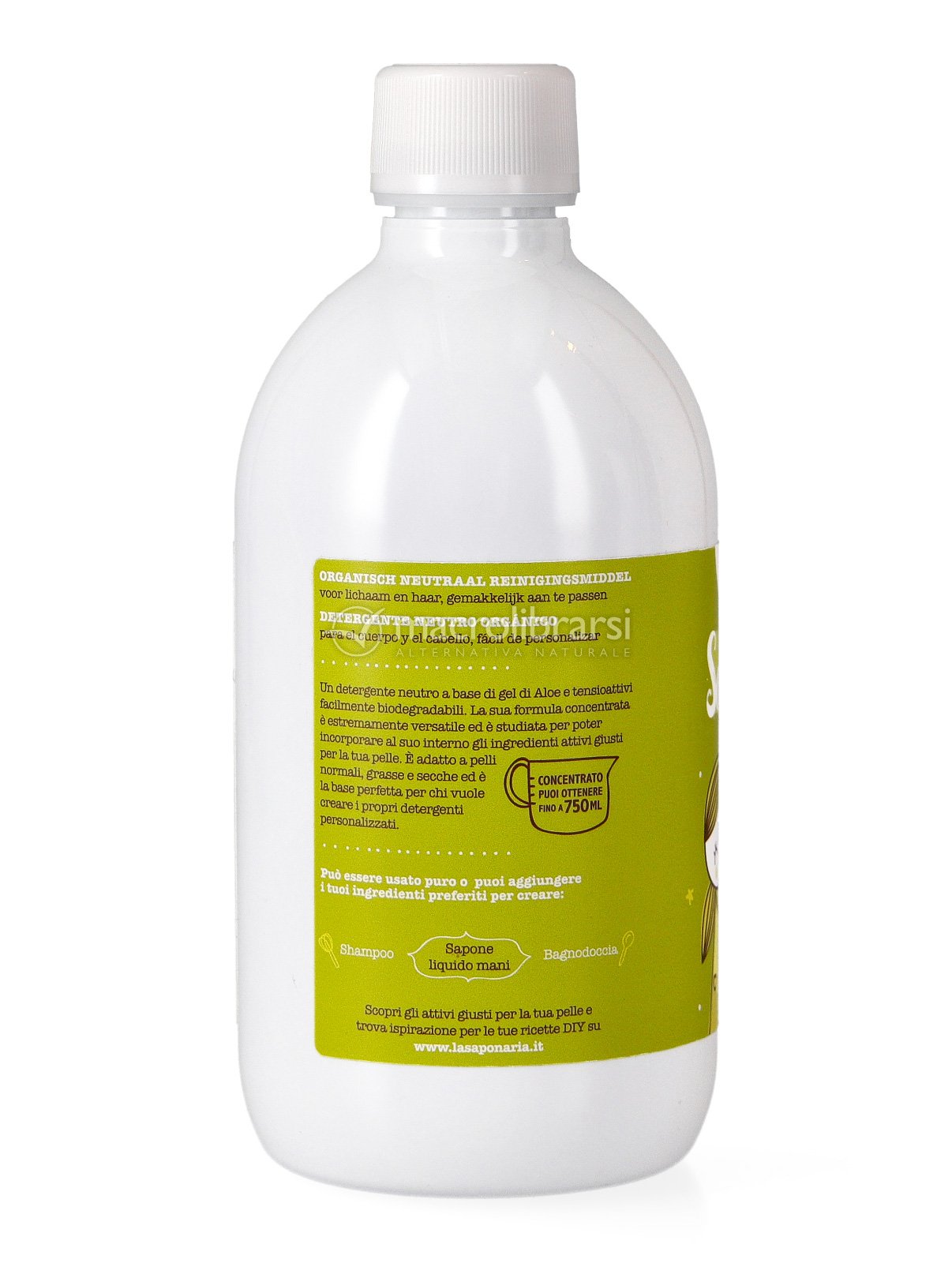 Shampoo neutro ottimo sia usato da solo sia come base per creare degli shampoo personalizzati da abbinare agli olii essenziali come la lavanda.