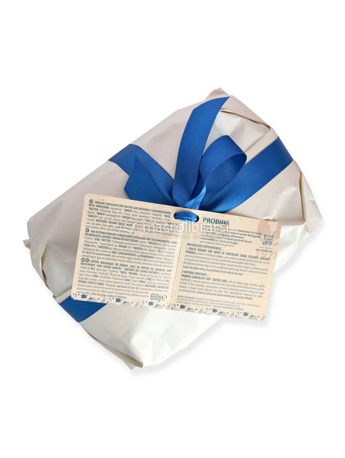 Dolce di pasqua biologico senza zuccheri aggiunti, con gocce di cioccolato.
