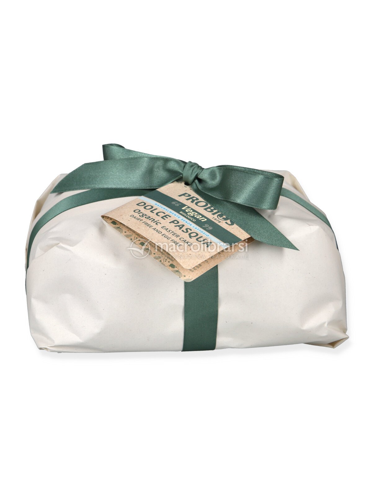 questo dolce di pasqua di probios è uno dei pochi in commercio dichiaratamente senza latte (non contiene neanche le tracce) oltre ad essere vegano. anche se è senza uova e burro questo prodotto è morbido, e fragrante proprio come una colomba vera e propria.