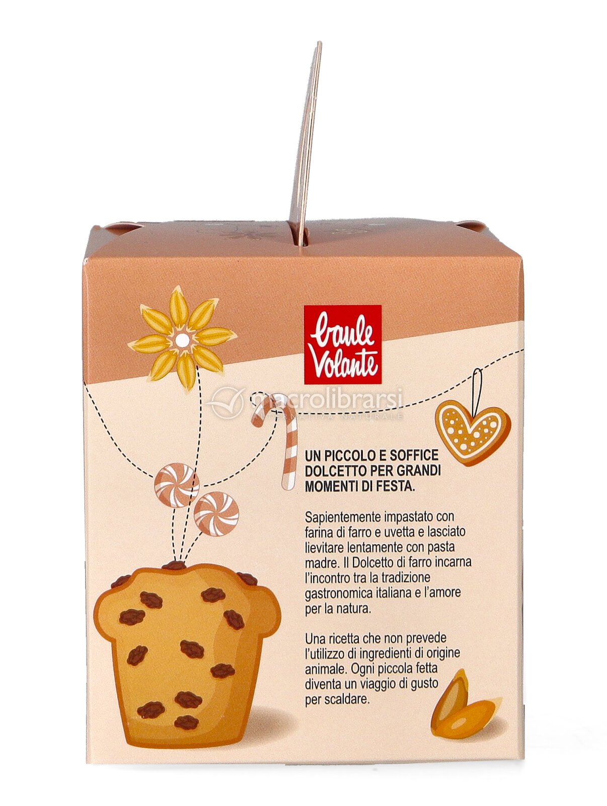 Fin dal primo sguardo si intuisce la cura: la farina di farro biologica, la pasta madre che dona sofficità e aroma, l’uvetta sultanina che punteggia ogni fetta con una dolce nota fruttata. Non c’è olio di palma, solo ingredienti veri e buoni: lo zucchero, gli aromi naturali di vaniglia e agrumi, quell’alone di profumo che fa pensare alle luci calde, al camino, ai sorrisi di chi ci sta intorno.