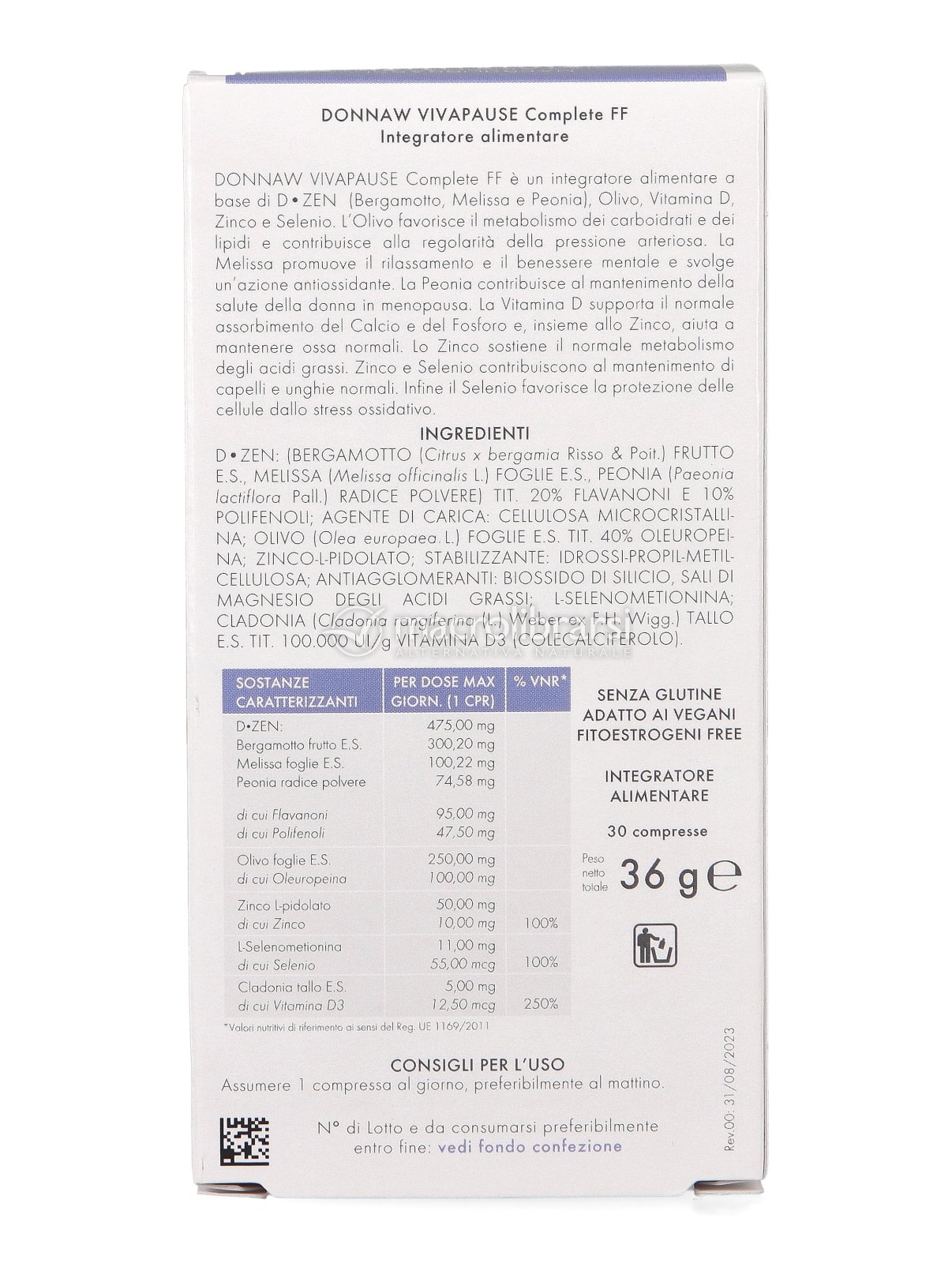 L'integratore alimentare DonnaW - Vivapause Complete FF supporta il metabolismo della donna che si prepara a intraprendere, o sta attraversando, la menopausa.