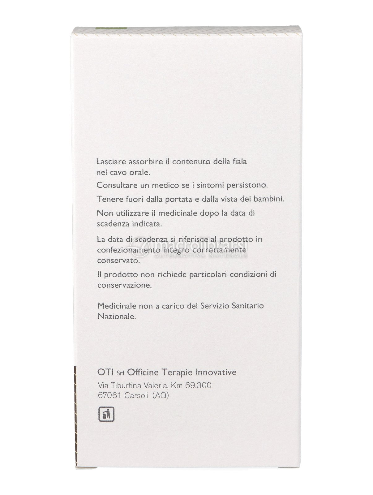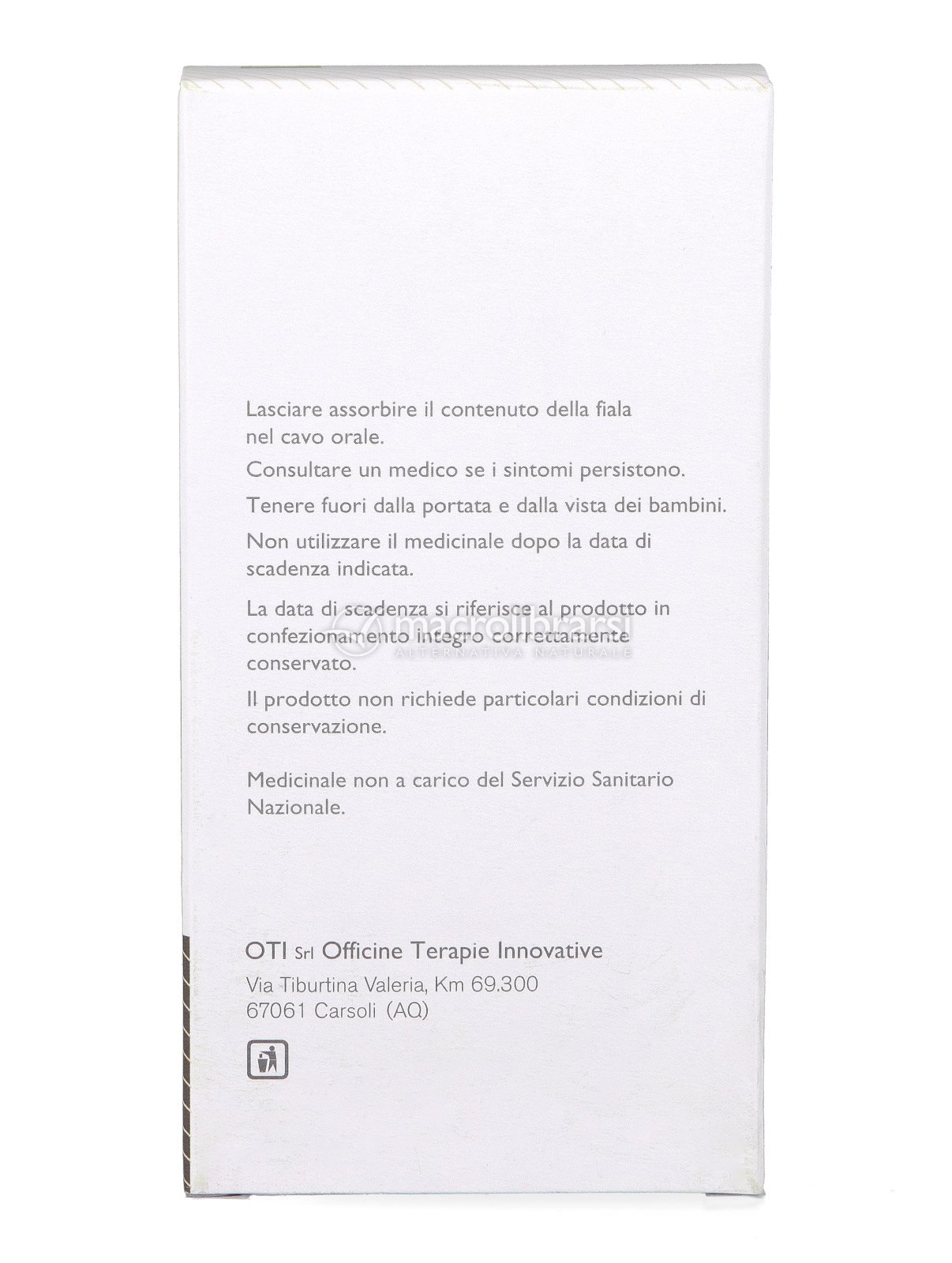 Lasciare assorbire il contenuto della fiala nel cavo orale. Consultare il medico se i sintomi persistono.