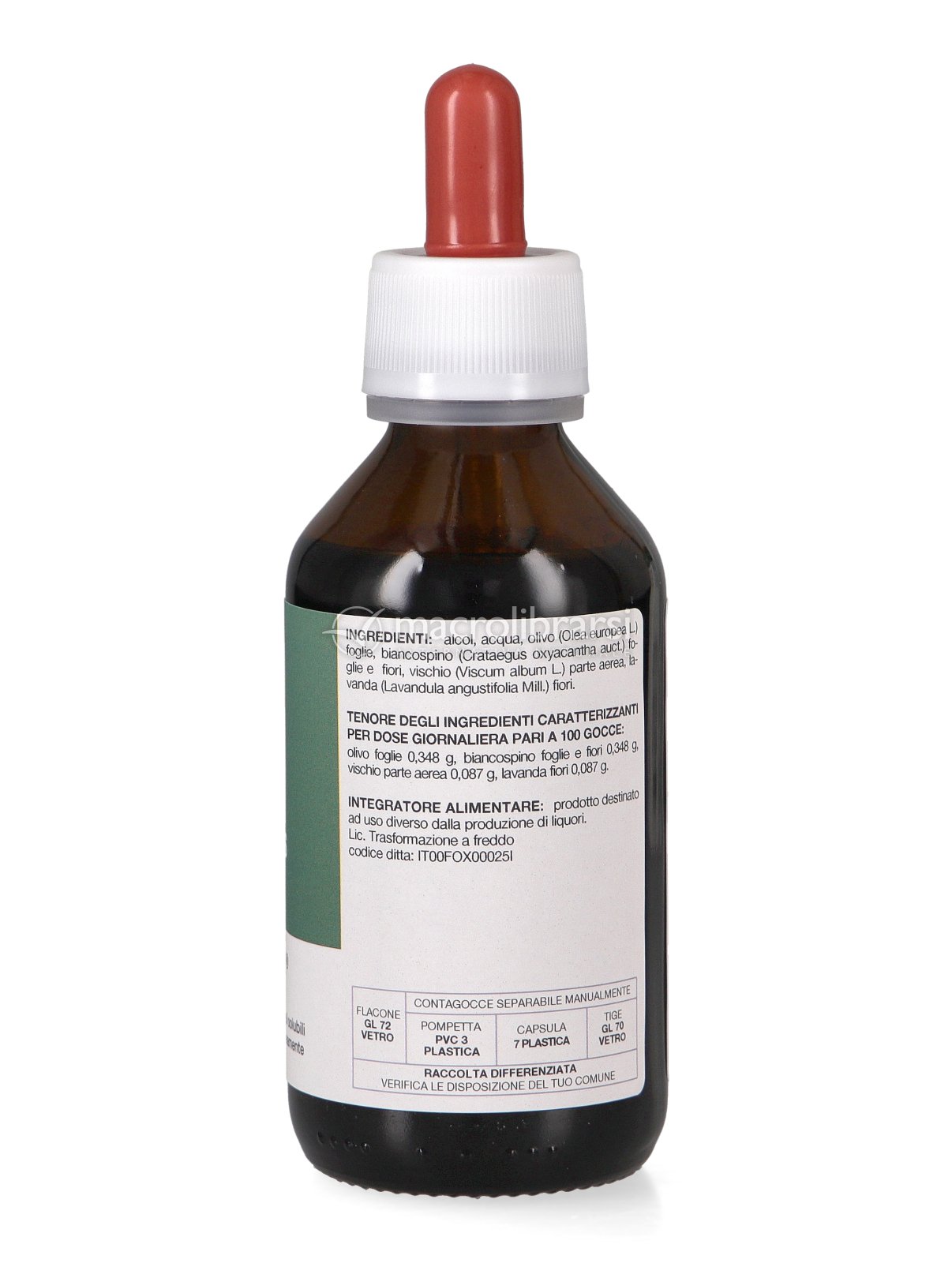 | Disclaimer | Non superare la dose giornaliera consigliata. Gli integratori alimentari non vanno intesi come sostituti di una dieta variata ed equilibrata. Tenere fuori dalla portata dei bambini al di sotto dei tre anni. Non utilizzare in gravidanza e nei bambini o comunque per periodi prolungati senza sentire il parere del medico. Conservare in luogo asciutto e lontano da fonti di calore. Richiudere la confezione dopo l'uso. Macrolibrarsi ricorda l'importanza di seguire uno stile di vita sano e un'alimentazione variata ed equilibrata. |