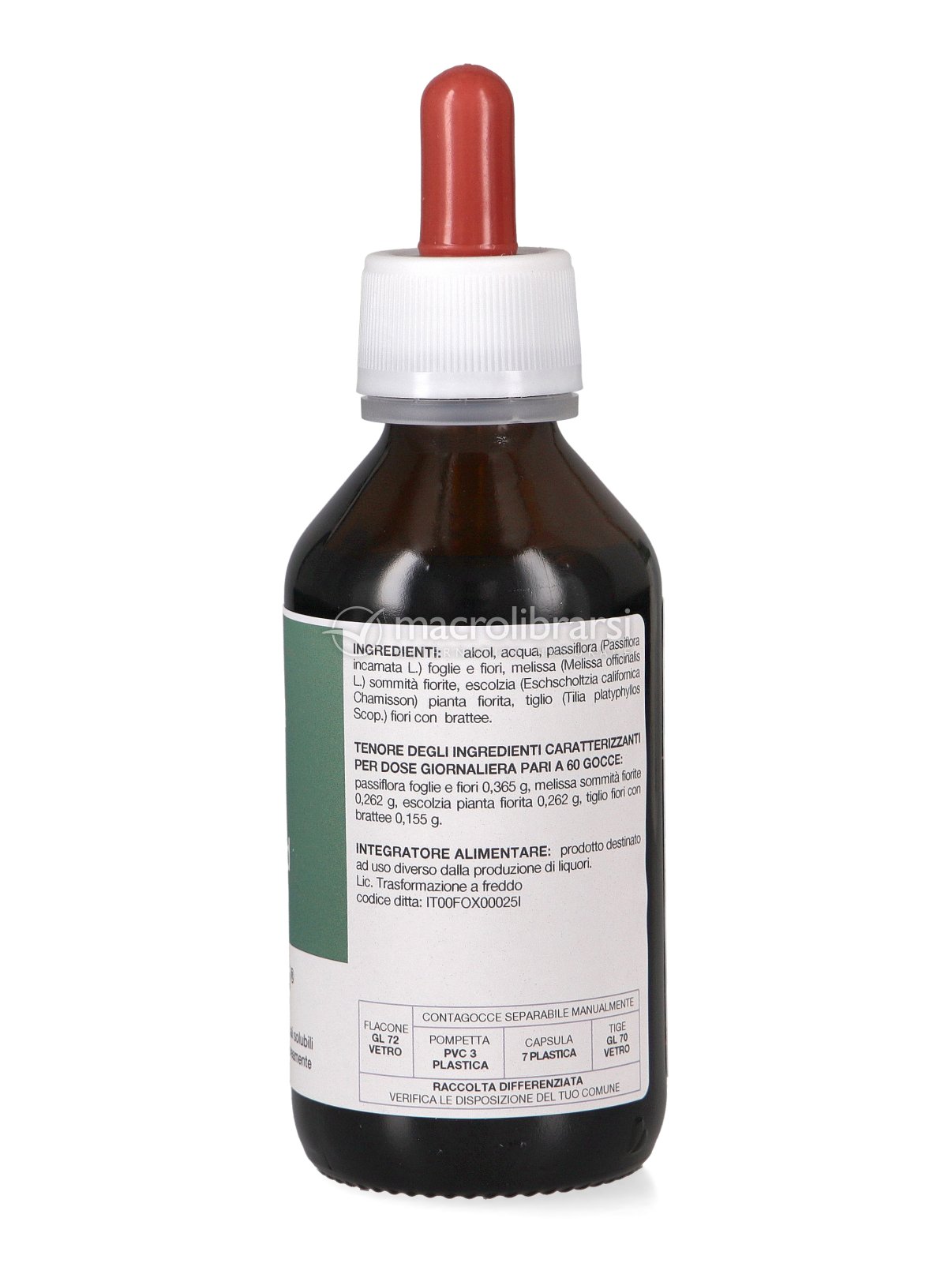 | Disclaimer | Non superare la dose giornaliera consigliata. Gli integratori alimentari non vanno intesi come sostituti di una dieta variata ed equilibrata. Tenere fuori dalla portata dei bambini al di sotto dei tre anni. Non utilizzare in gravidanza e nei bambini o comunque per periodi prolungati senza sentire il parere del medico. Conservare in luogo asciutto e lontano da fonti di calore. Richiudere la confezione dopo l'uso. Macrolibrarsi ricorda l'importanza di seguire uno stile di vita sano e un'alimentazione variata ed equilibrata. |