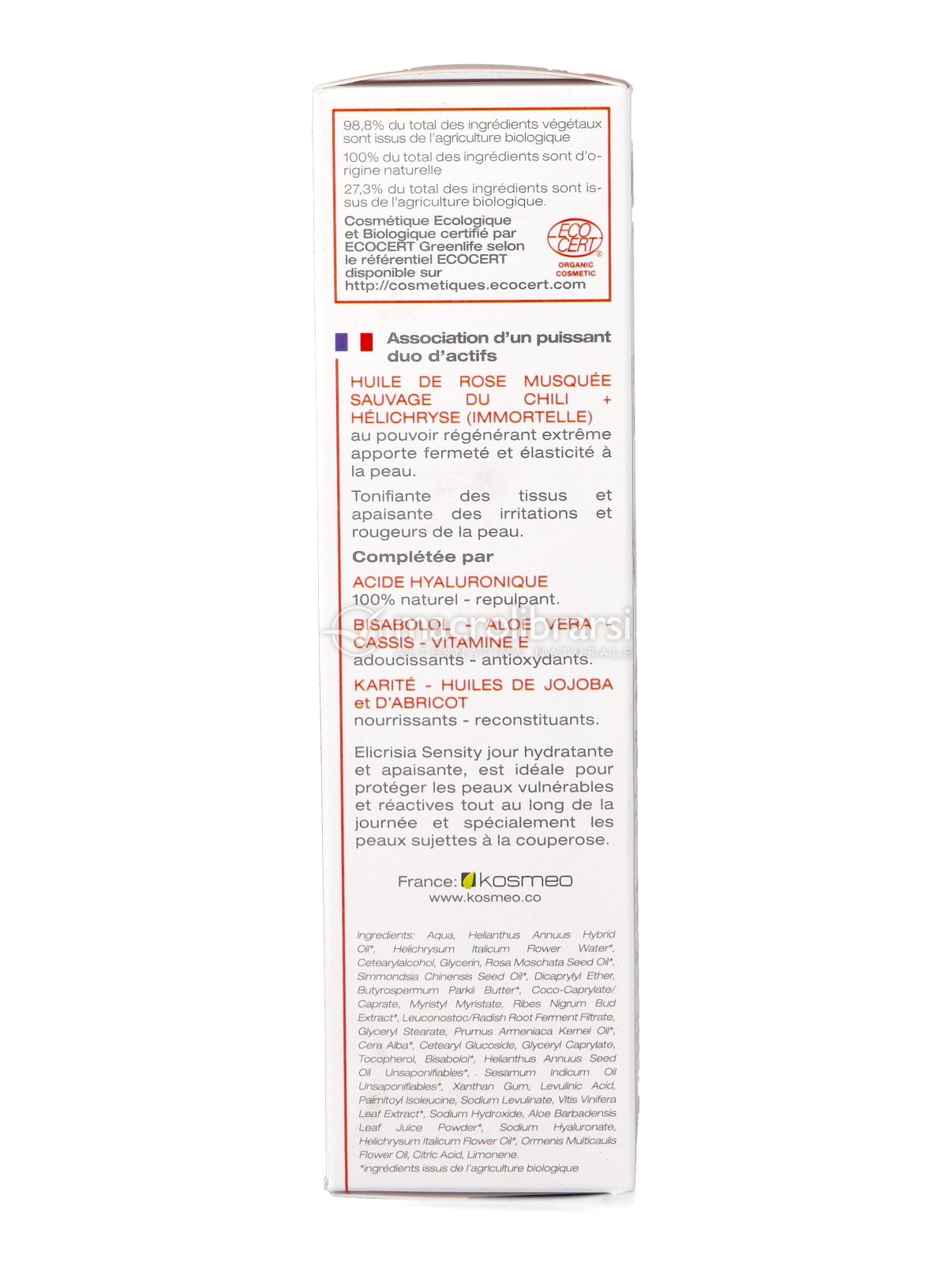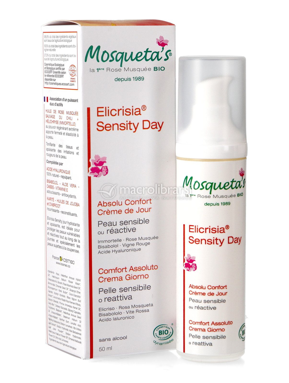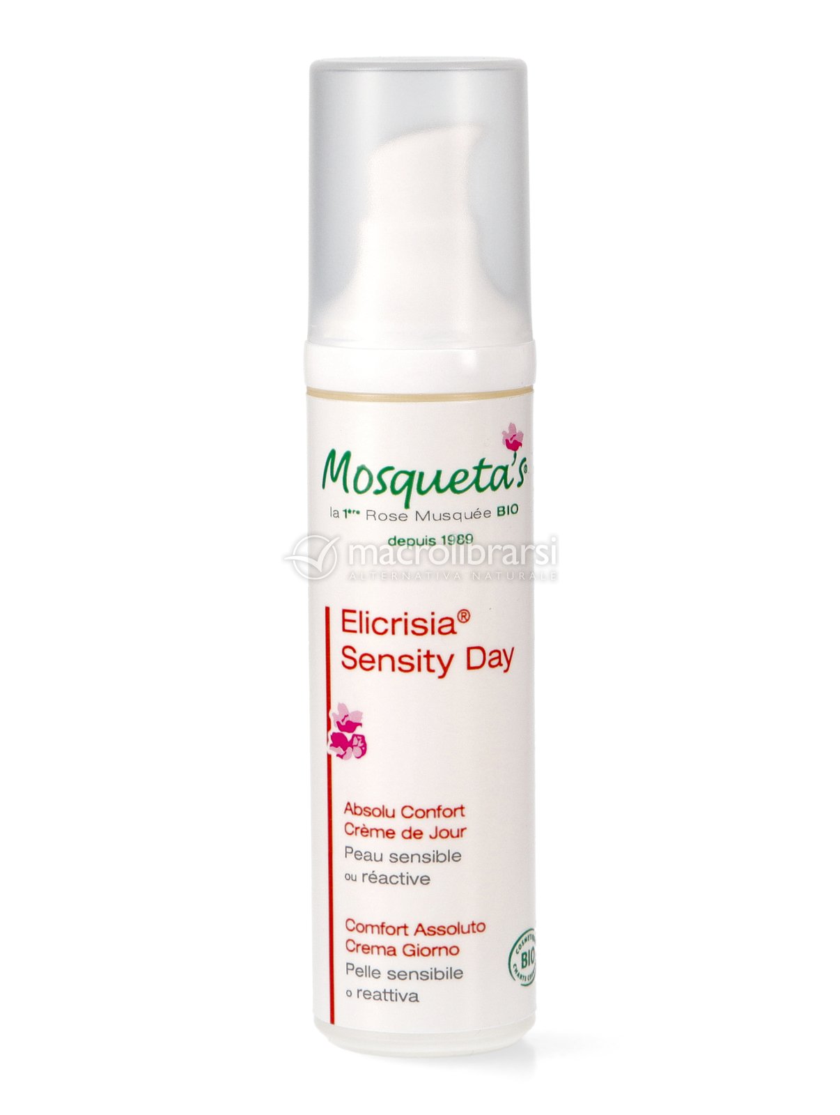 Elicrisia® Sensity Day è una crema viso con Elicriso, Rosa Mosqueta, Bisabolo, Vite rossa, Acido Ialuronico.