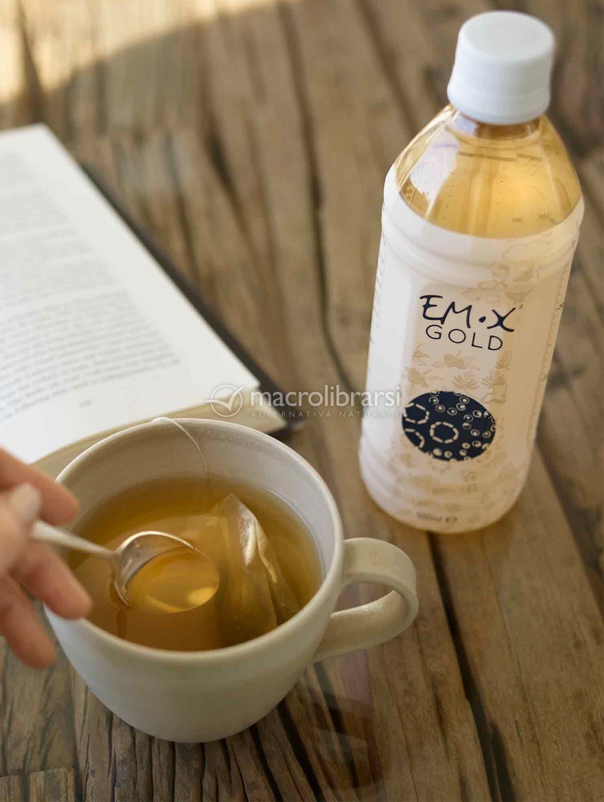 10 – 30 ml di EM-X Gold® diluiti in tè, caffè o acqua a 80-90 °C.