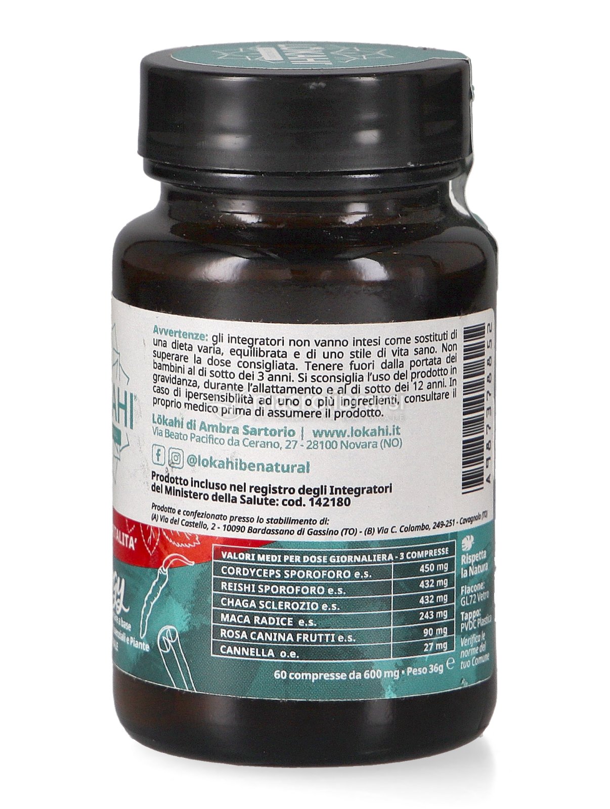 Energy di Lōkahi Be Natural® è un integratore alimentare in compresse che unisce i benefici dei funghi medicinali a quelli degli estratti vegetali per favorire la tua naturale energia e vitalità. Contiene: