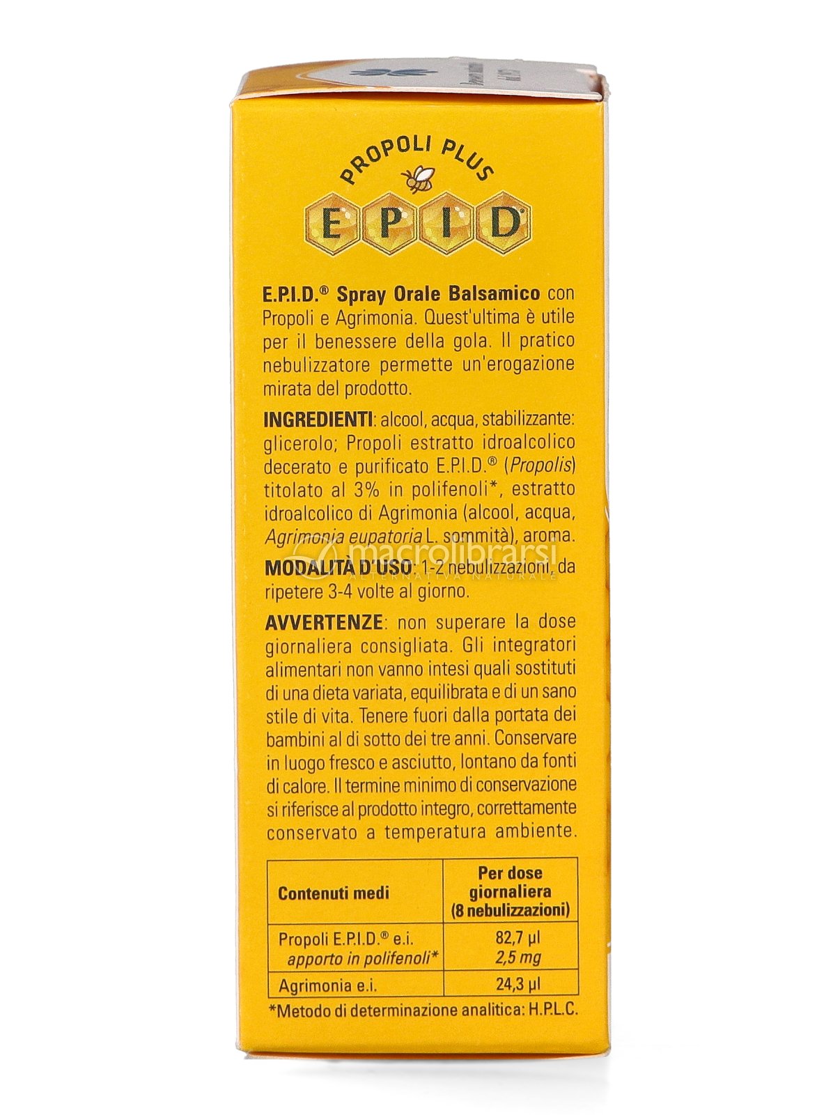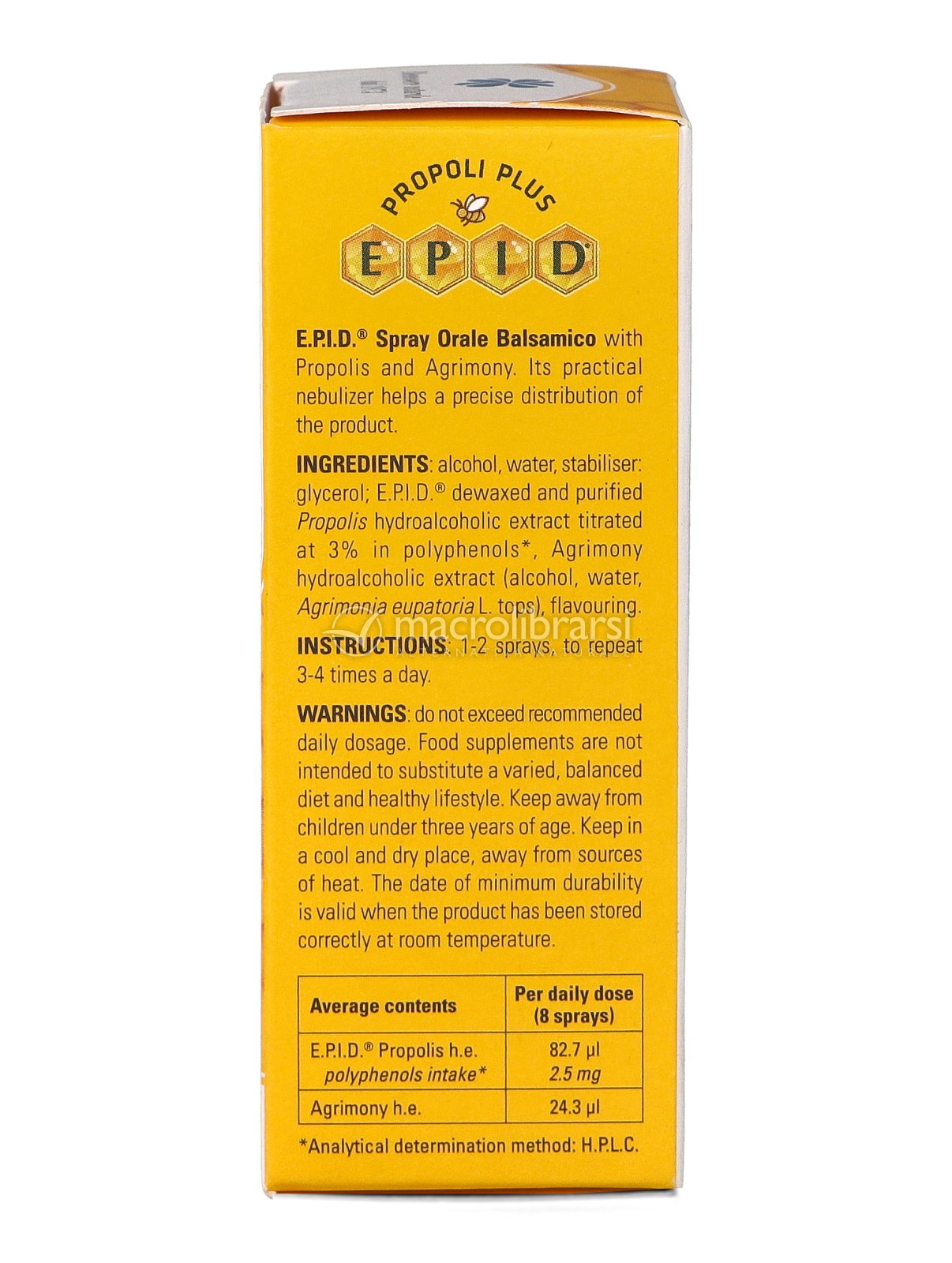 Epid Propoli Plus Balsamico è uno spray al gusto di erbe dalle proprietà balsamiche, senza glutine.