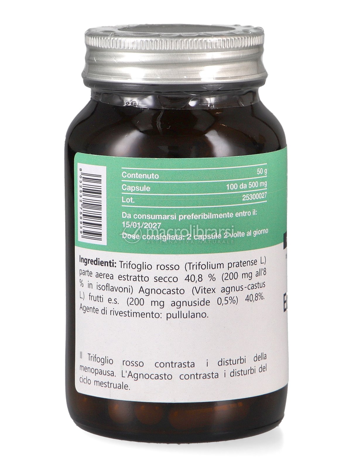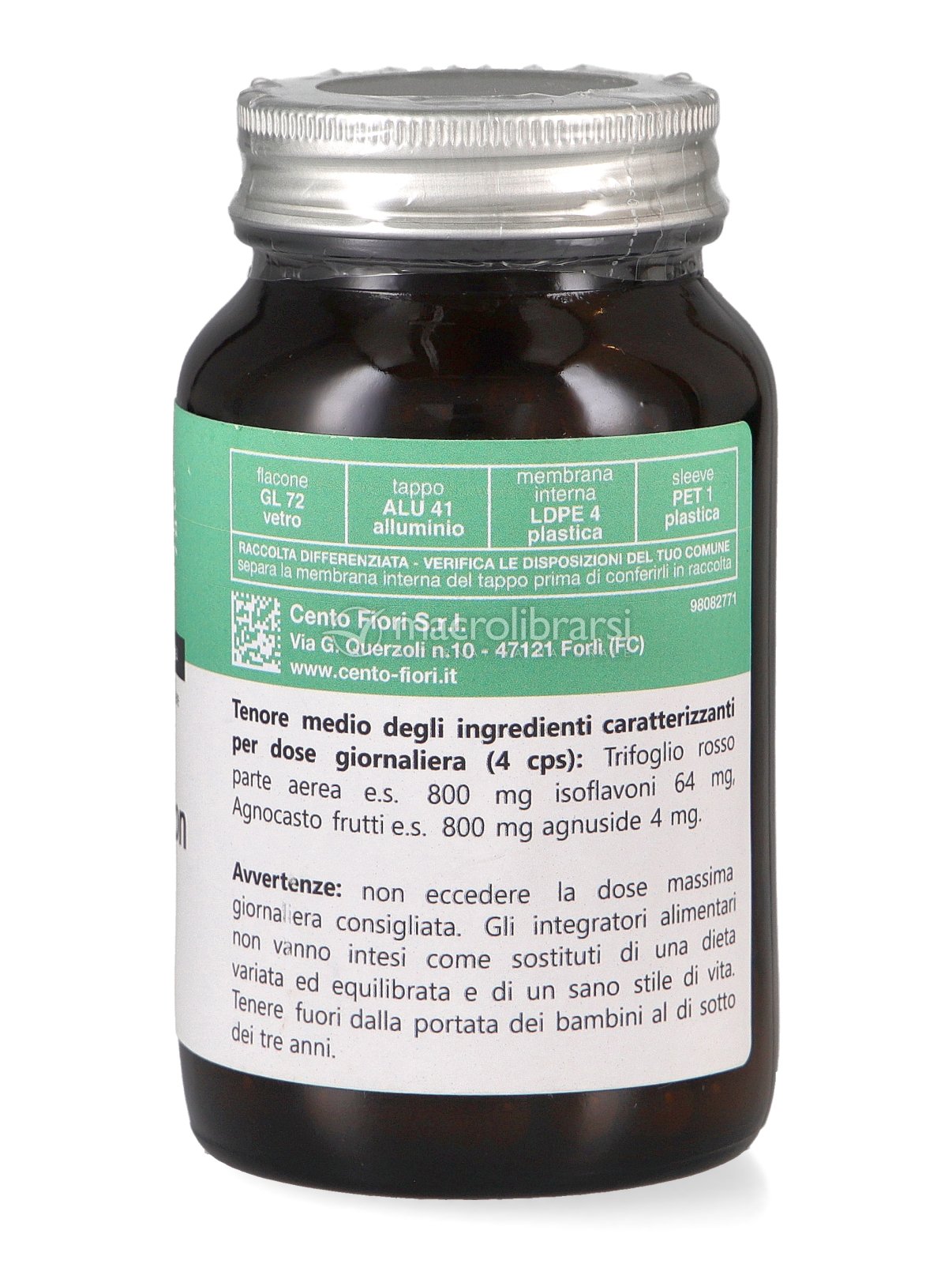 Il prodotto contiene trifoglio rosso (estratto secco titolato all’8% in isoflavoni) e agnocasto (estratto secco titolato allo 0,5% in agnuside).