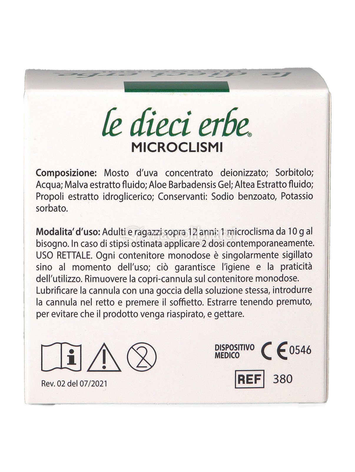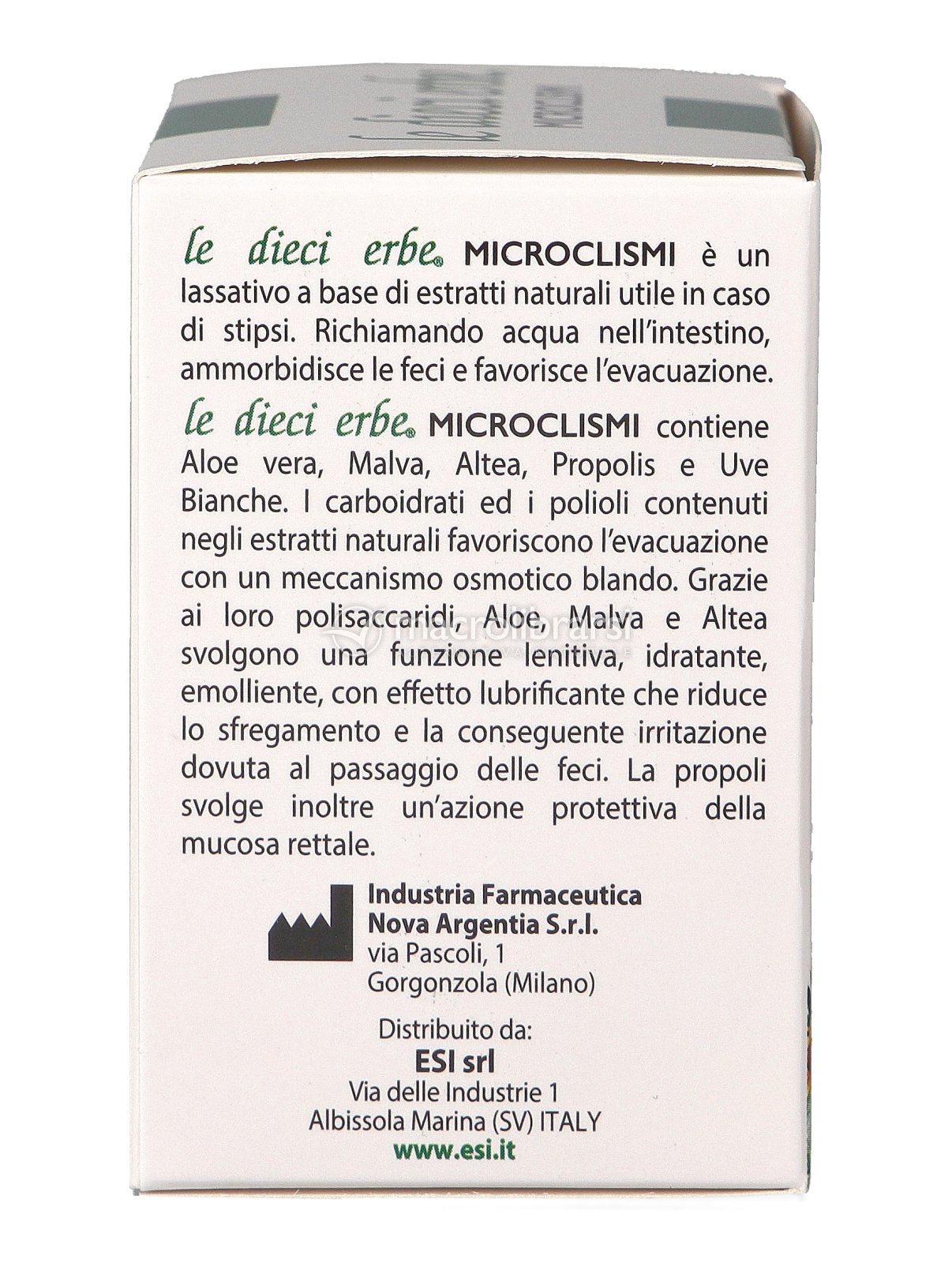Le Dieci Erbe MICROCLISMI di ESI è un lassativo delicato, adatto ad adulti e ragazzi sopra i 12 anni.