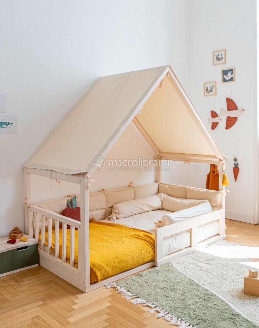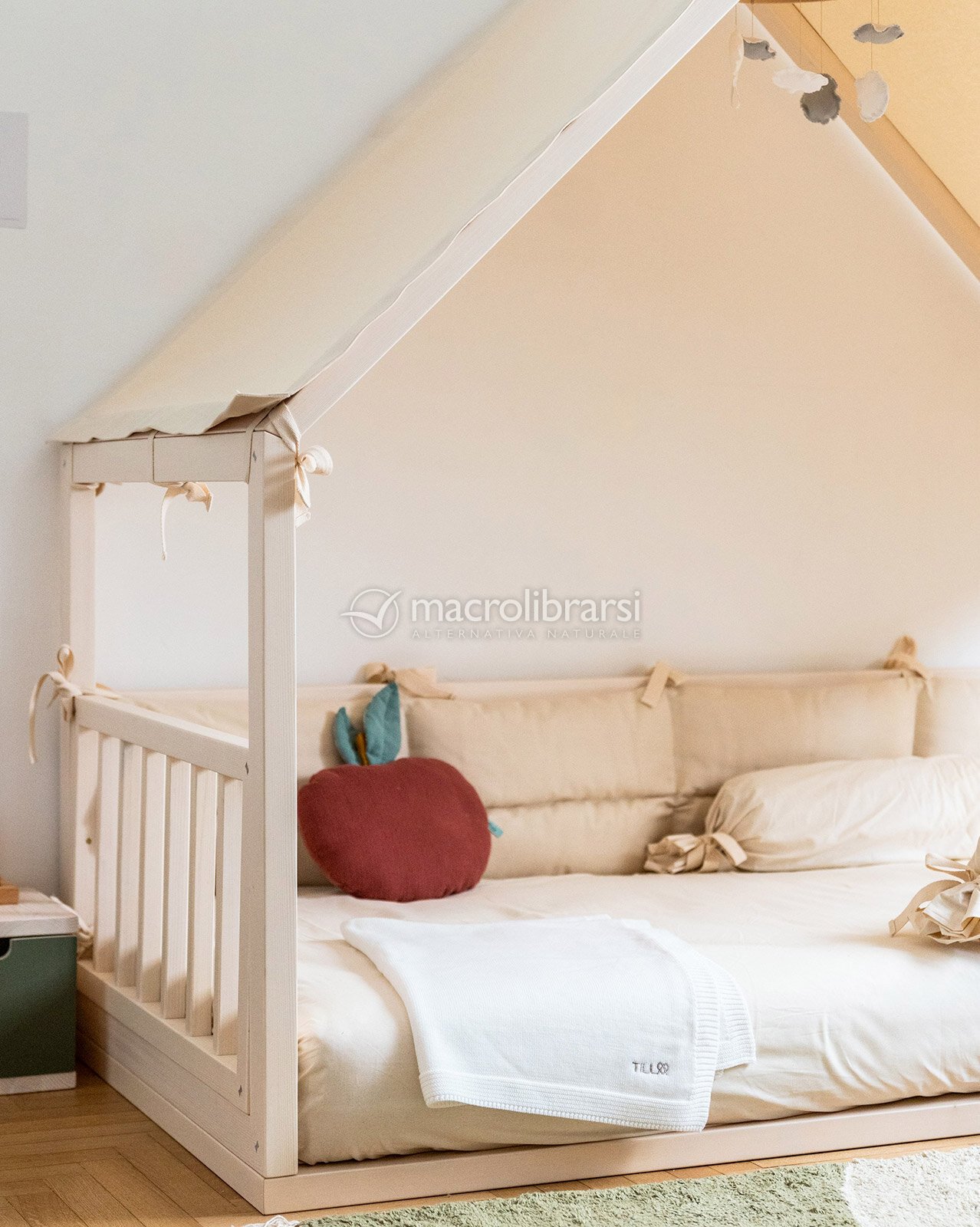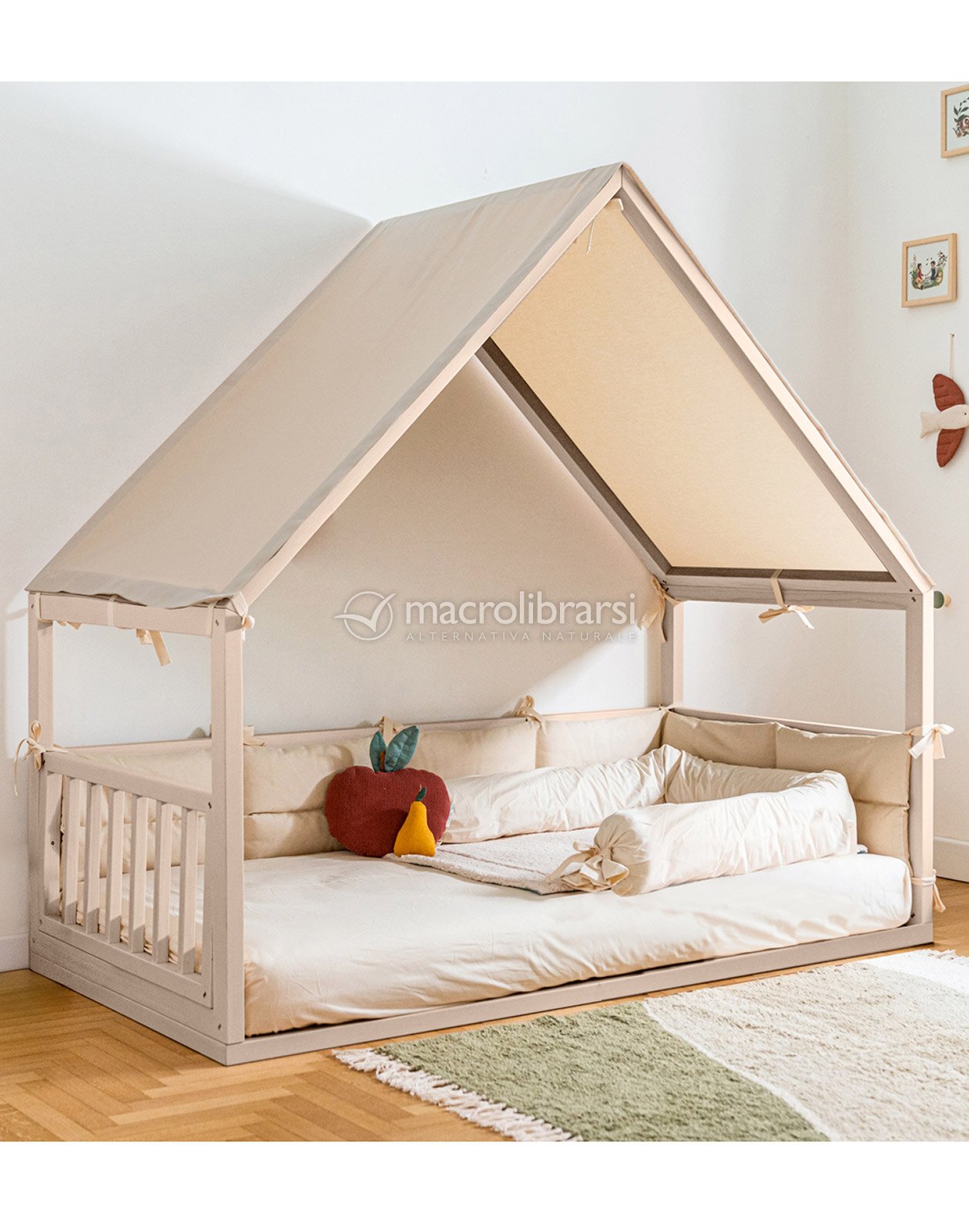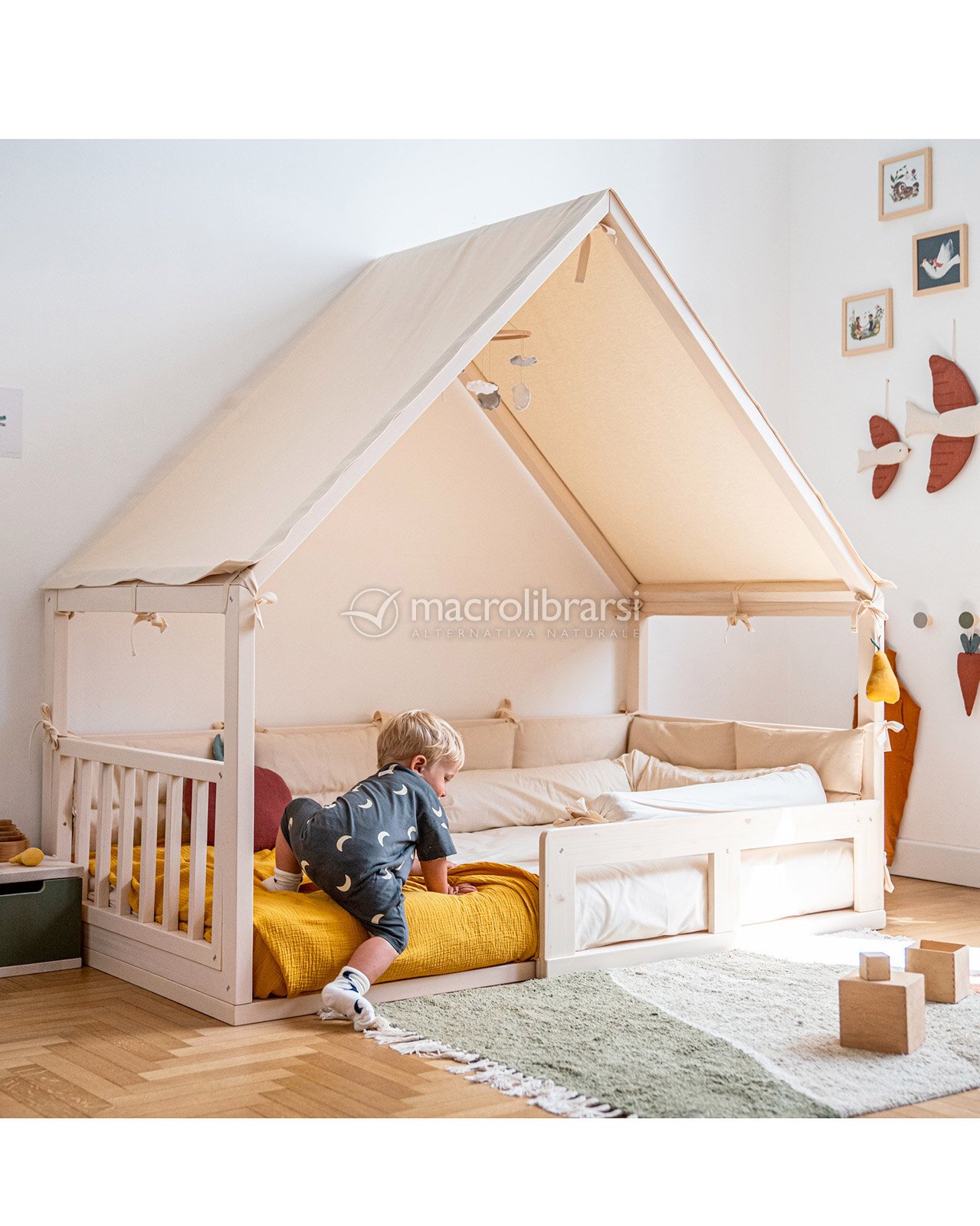 Include la struttura in solido legno massello, le doghe e il tetto in cotone. Il materasso non è incluso.