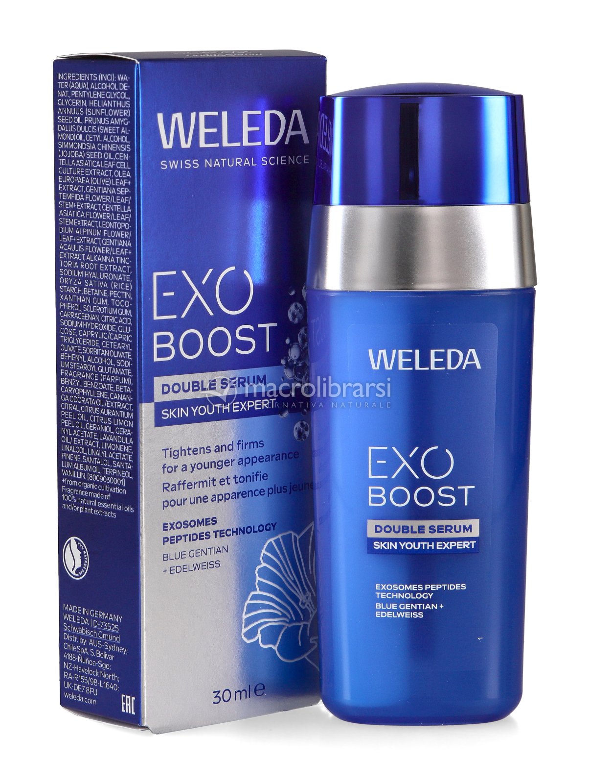 Adatto a tutti i tipi di pelle e particolarmente indicato per la pelle matura, Exo Boost Double Serum di Weleda aiuta a contrastare rughe, perdita di idratazione e tono, luminosità ed elasticità cutanea.