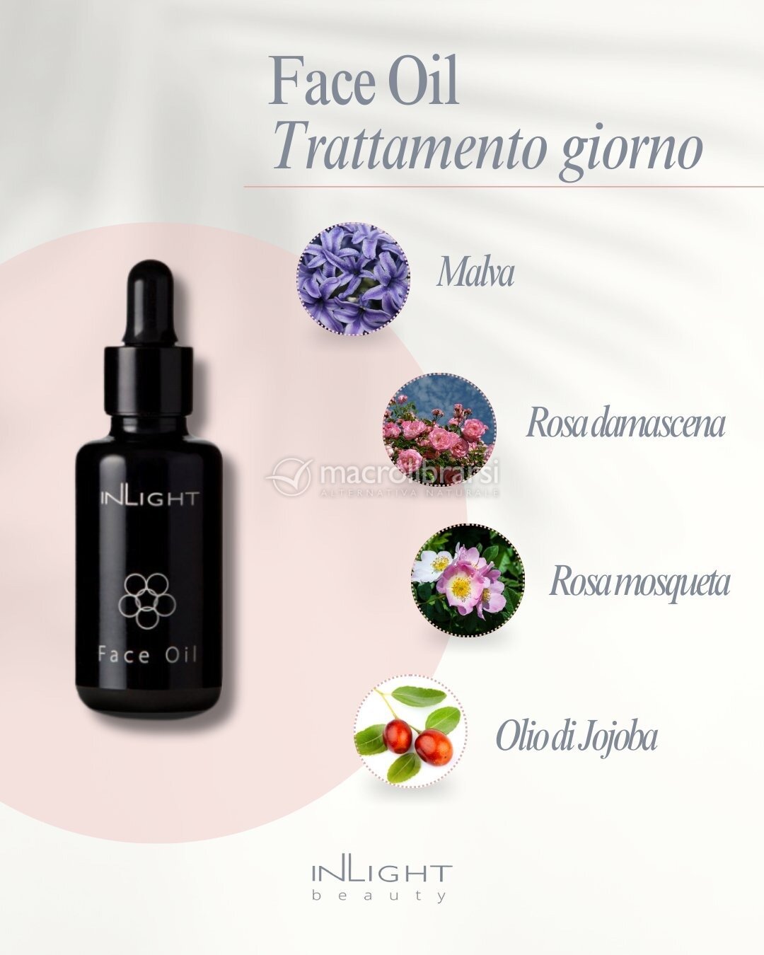 Inlight Face Oil nutre senza appesantire, lascia la pelle morbida e protetta e, grazie alle sue note delicate di vaniglia e rosa, rende la routine un gesto piacevole e sensoriale.