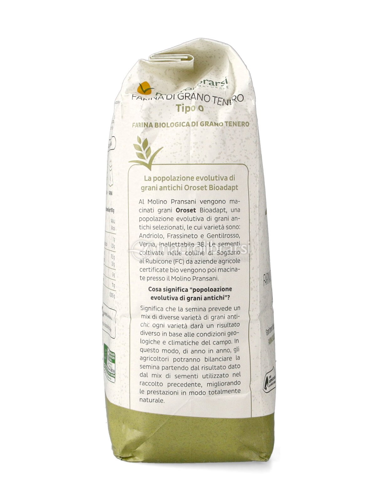 Al Molino Pransani vengono macinati grani Oroset Bioadapt, una popolazione evolutiva di grani antichi selezionati, le cui varietà sono: Andriolo, Frassineto e Gentilrosso, Verna, Inallettabile 38. Le sementi coltivate nelle colline di Sogliano al Rubicone (FC) da aziende agricole certificate bio vengono poi macinate presso il Molino Pransani.