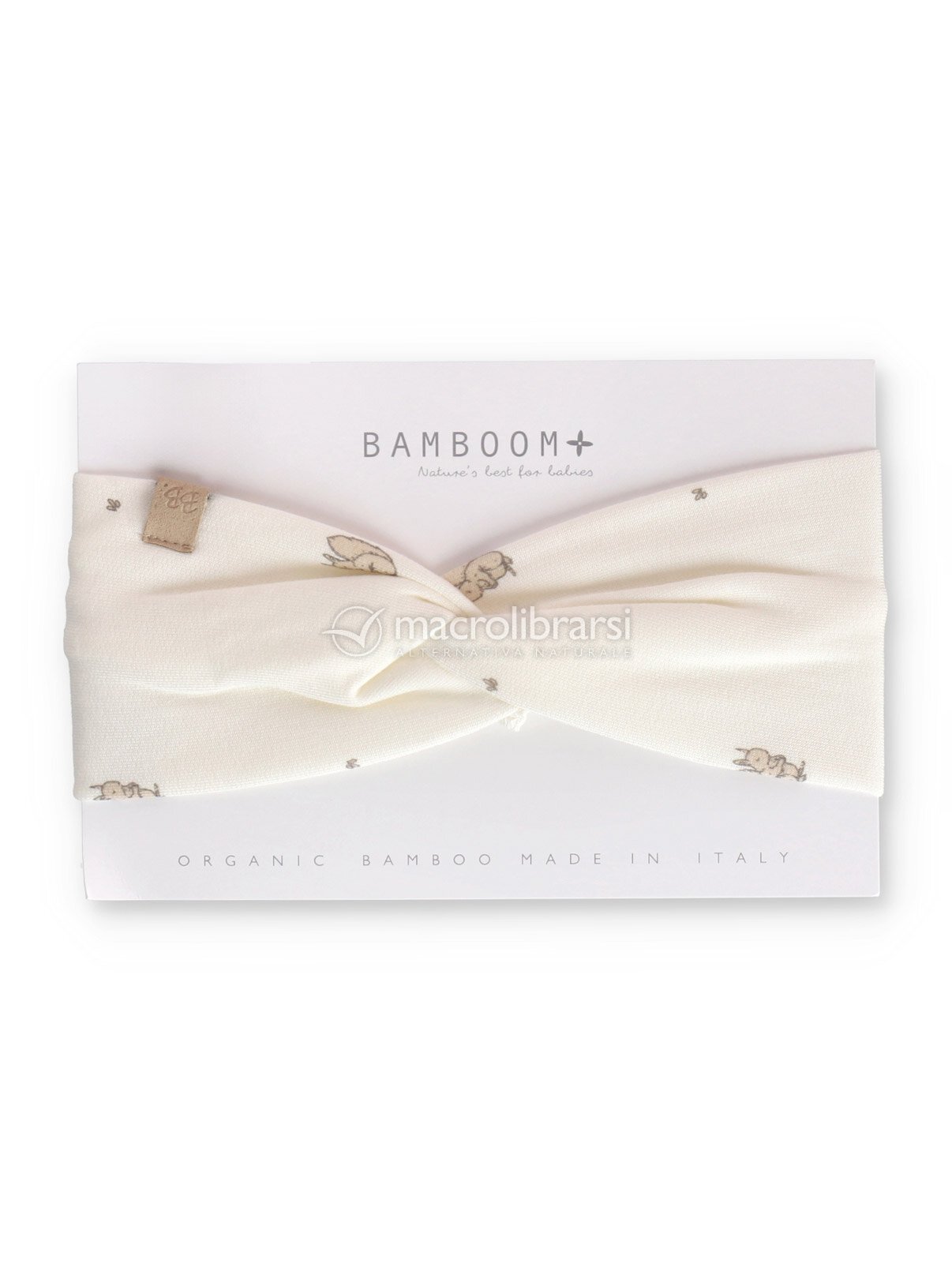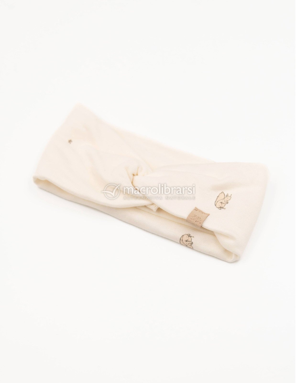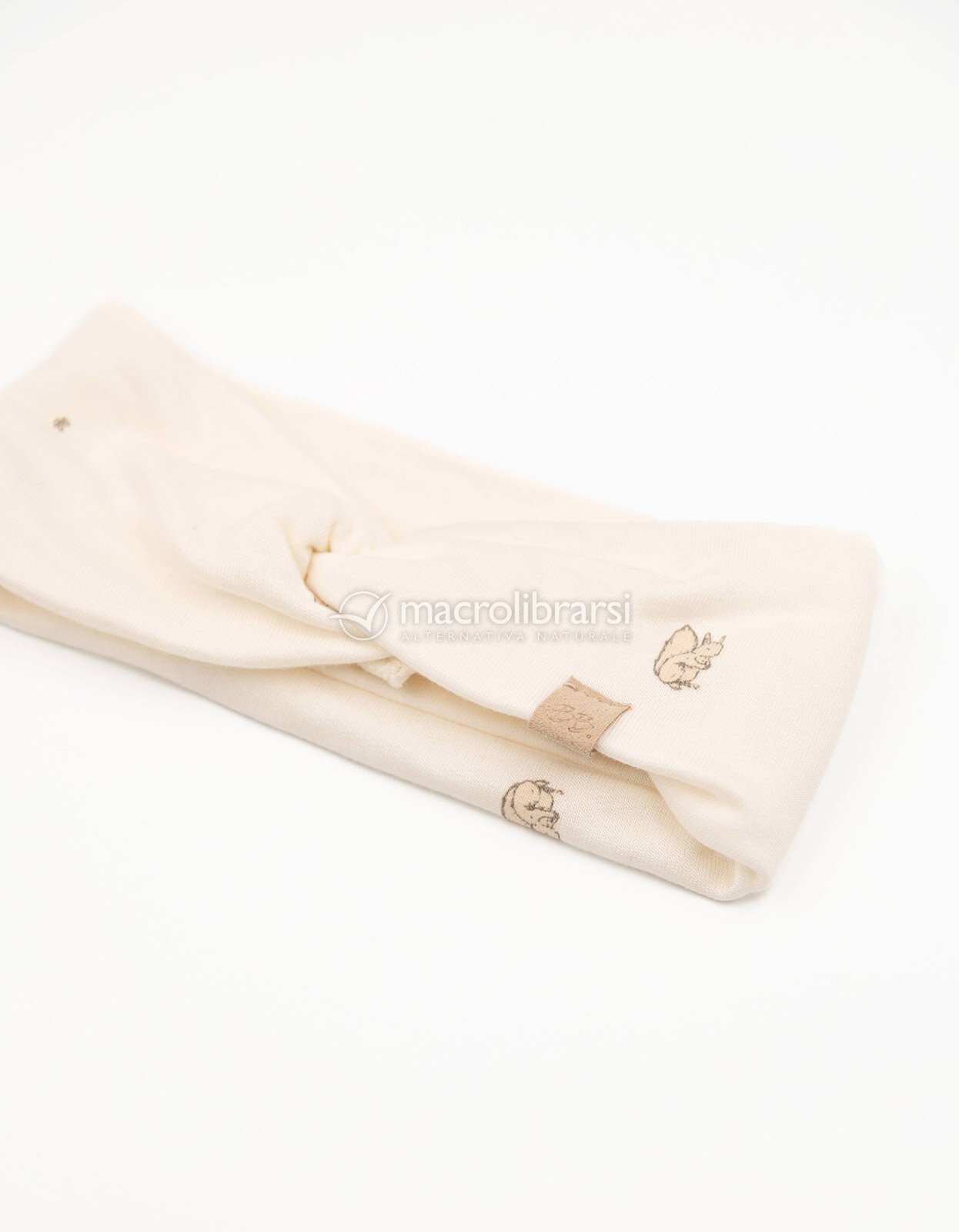 Fascia per capelli e scalda orecchie in bambù organico della collezione autunno-inverno 2025/2026 di Bamboom (stampa Squirrel Print).