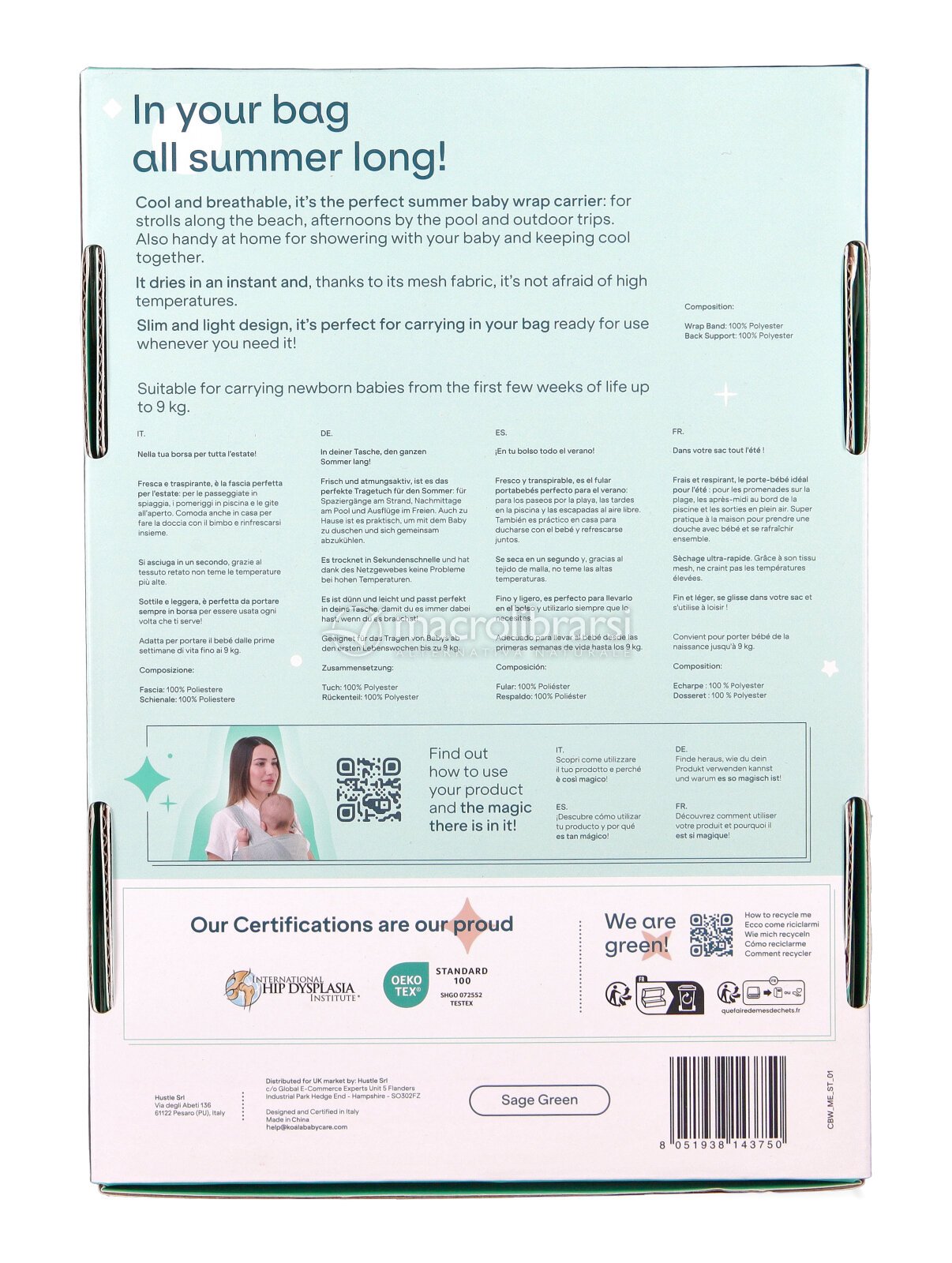 Koala Cuddle Breeze è la fascia portabebè perfetta per l'estate: fresca, leggera e pronta per essere portata ovunque, anche dove altre fasce non oseranno farlo, come in acqua!