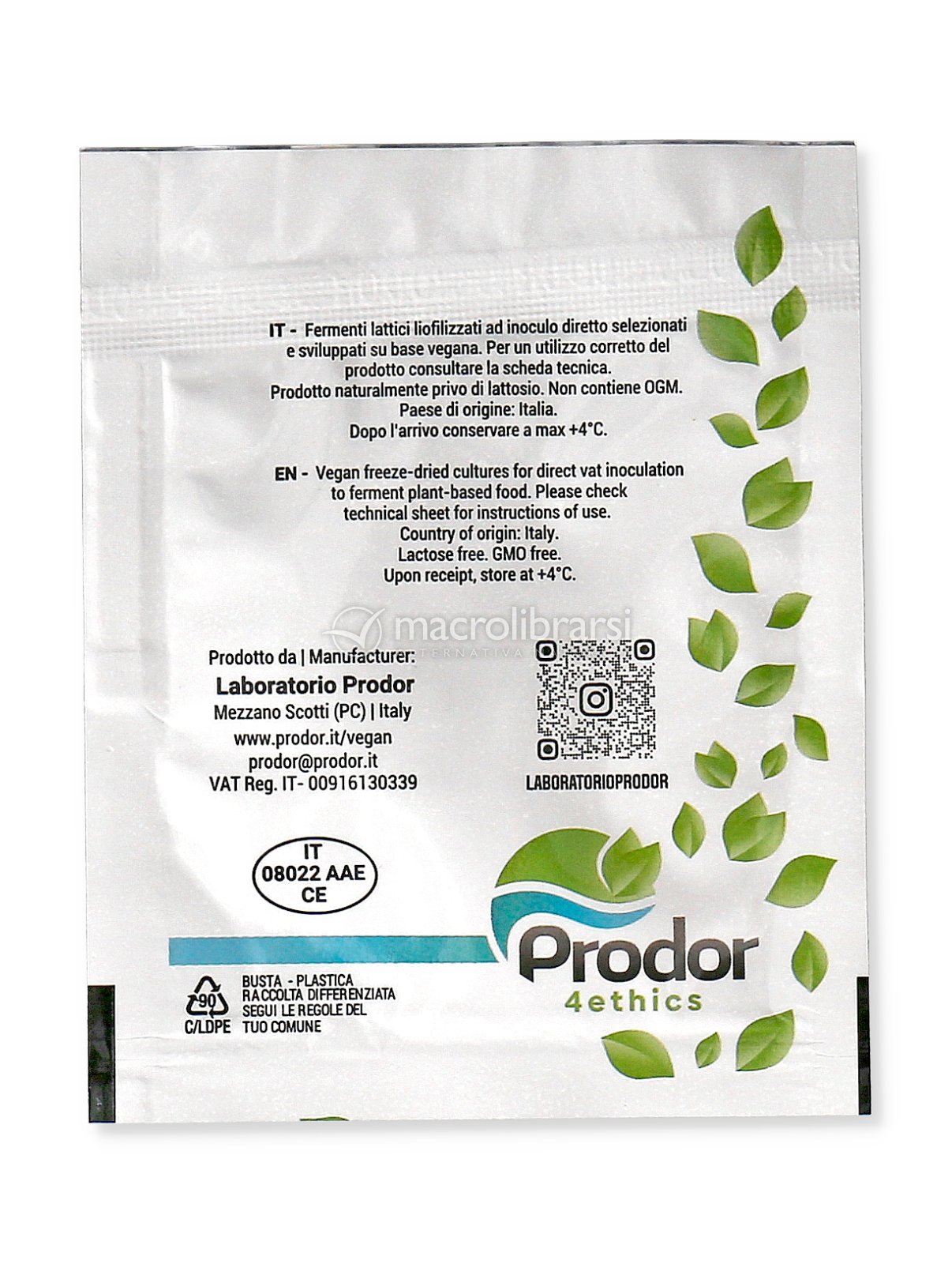 Note del produttore Il prodotto richiede la conservazione a +4°C. Il procedimento di liofilizzazione ed il confezionamento in atmosfera sterile garantiscono l'inalterabilità dei fermenti anche se esposti per brevi periodi a temperature più elevate, purché le confezioni rimangano integre. Il prodotto non necessita di trasporto refrigerato.