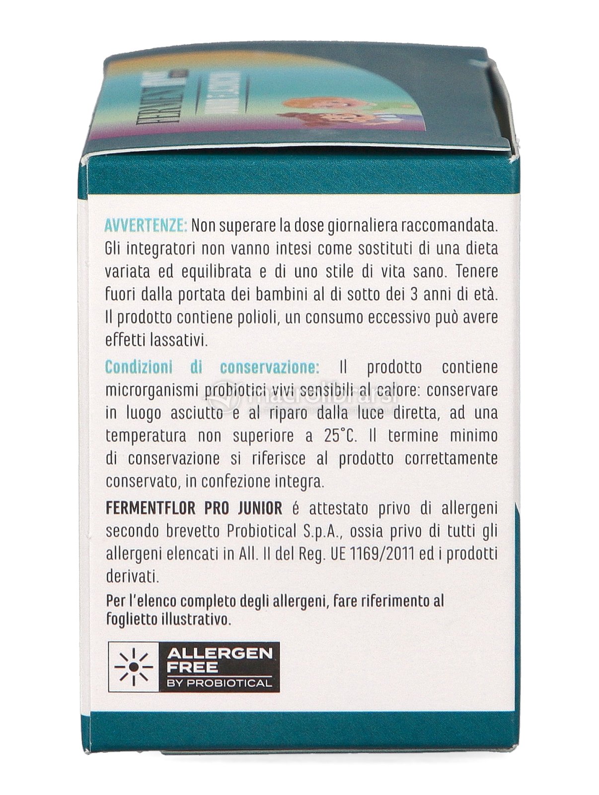 | Conservazione | Il prodotto contiene microrganismi probiotici vivi sensibili al calore: conservare in luogo asciutto e al riparo dalla luce diretta, ad una temperatura non superiore a 25 °C. |