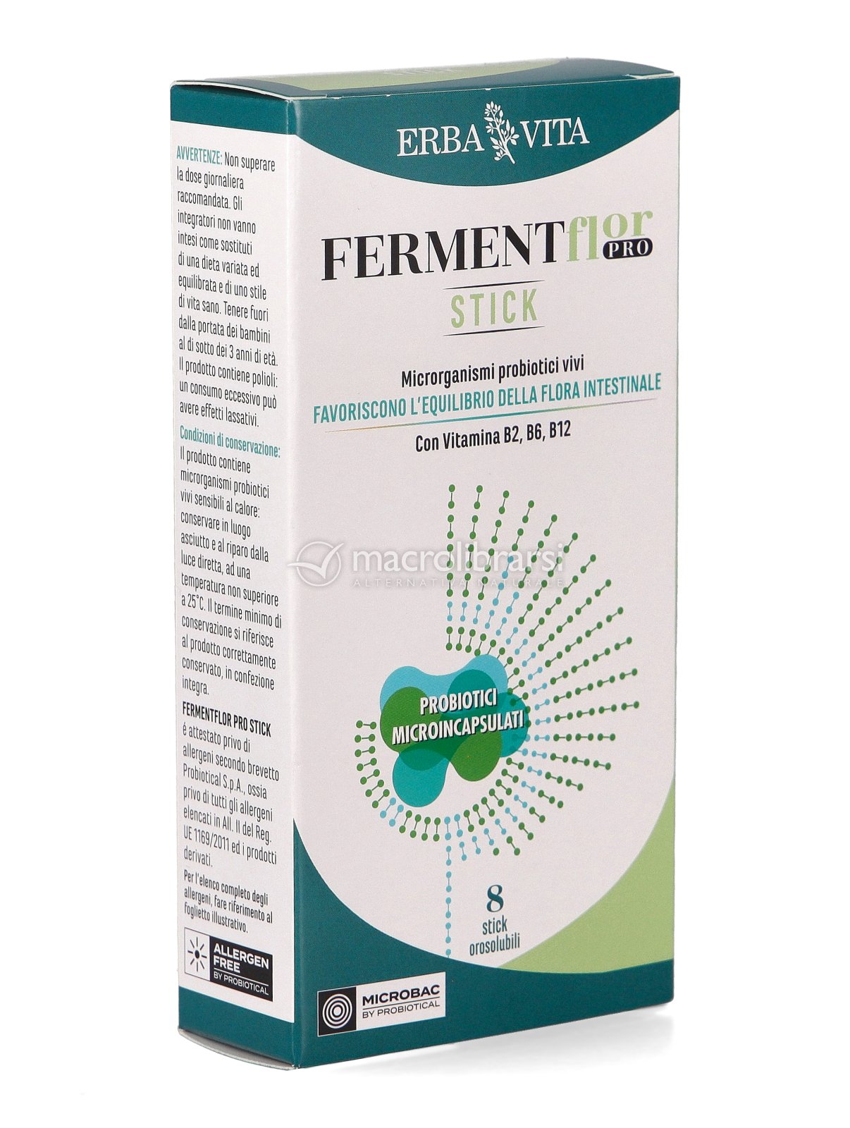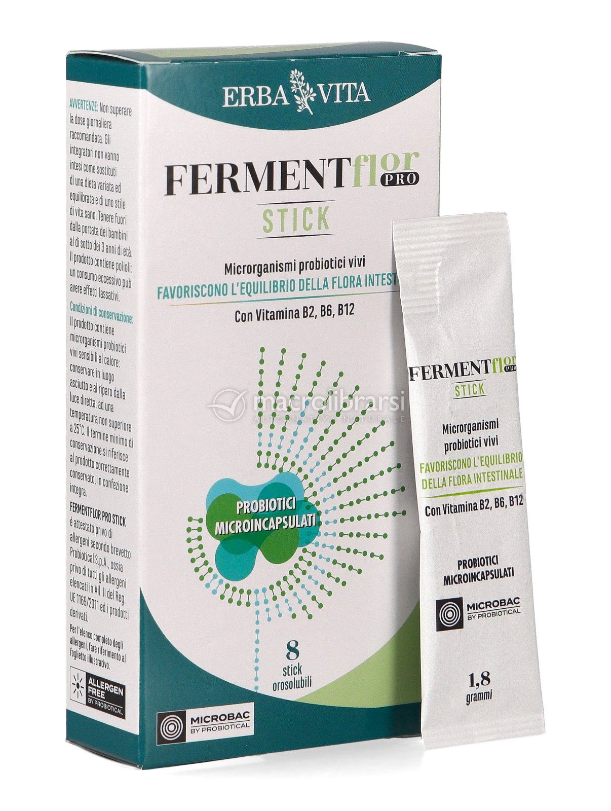 Contiene microrganismi probiotici vivi microincapsulati, utili per ripopolare l'ambiente intestinale, e vitamine del gruppo B, come Riboflavina (vitamina B2), che contribuisce al benessere delle mucose, vitamina B6 e B12, utili per favorire la funzionalità del sistema immunitario.