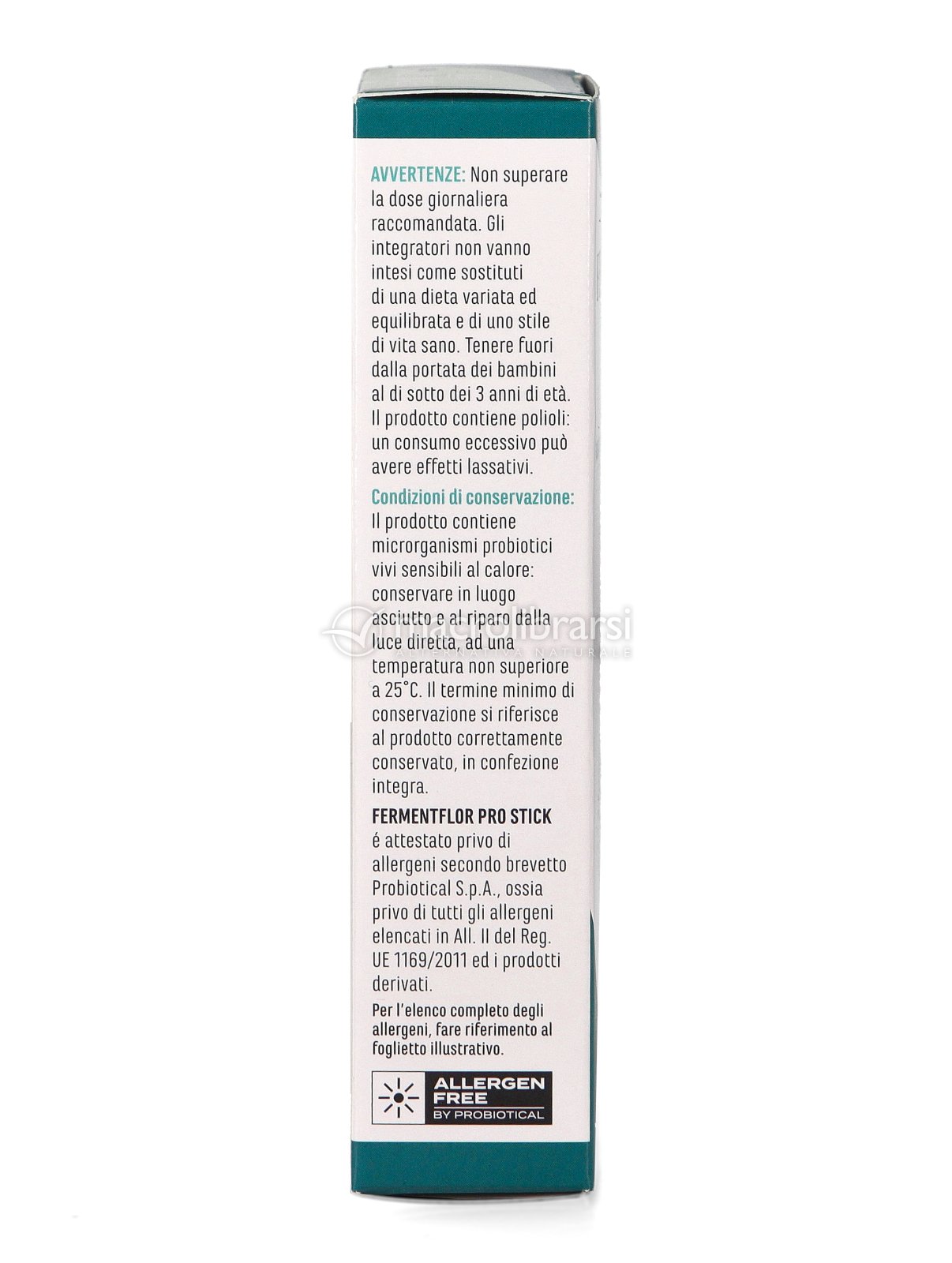 | Note | Il prodotto contiene microrganismi probiotici vivi sensibili al calore: conservare in luogo asciutto e al riparo dalla luce diretta, ad una temperatura non superiore a 25 °C. |