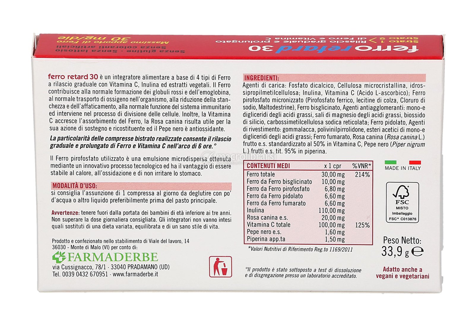 Ferro Retard 30 è un integratore con formulazione ad elevata biodisponibilità che garantisce la massima efficacia e la massima digeribilità.