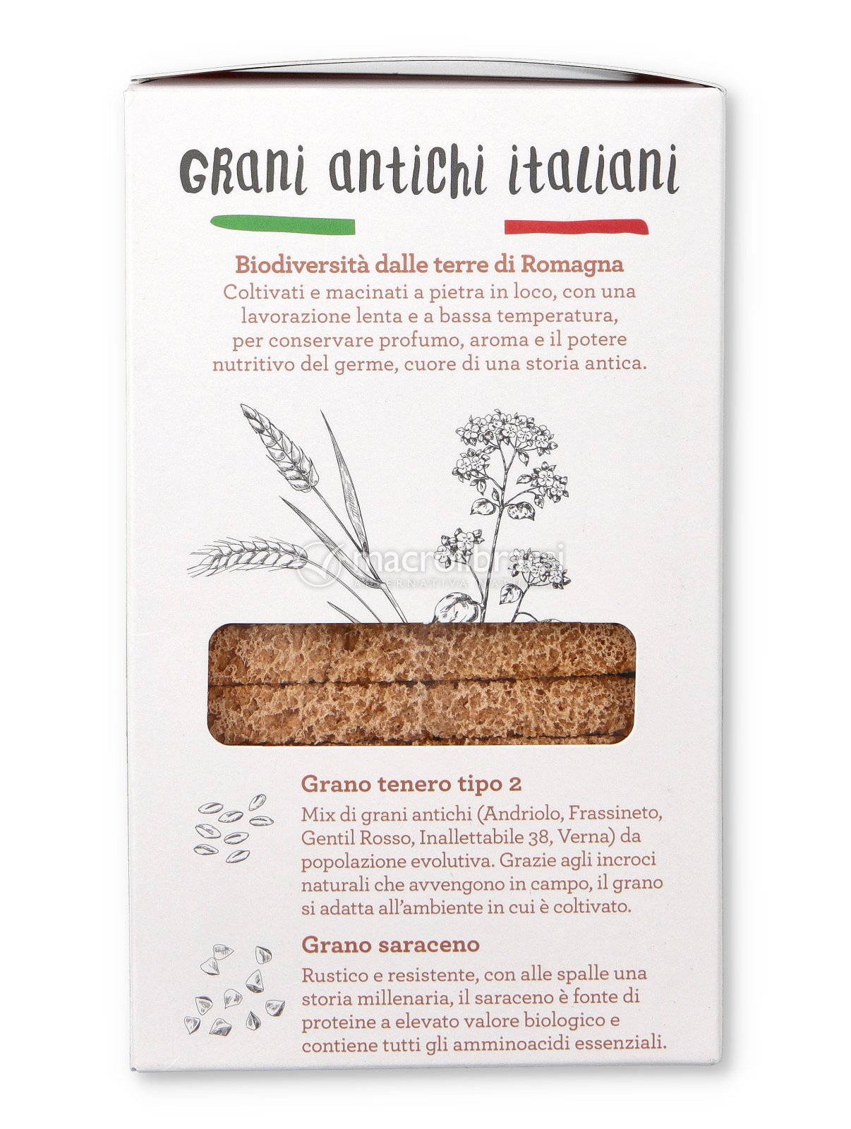 Hanno un sapore ricco e rustico grazie ai grani antichi e un tocco speciale dato dal saraceno. La pasta madre le rende leggere e gustose, con una croccantezza perfetta. Mi piace anche il fatto che contengano olio extravergine di oliva invece dell'olio di girasole, cosa che le rende ancora più saporite e sane. Un altro plus è che sono biologiche. Le mangio volentieri sia da sole che con marmellata e formaggio.