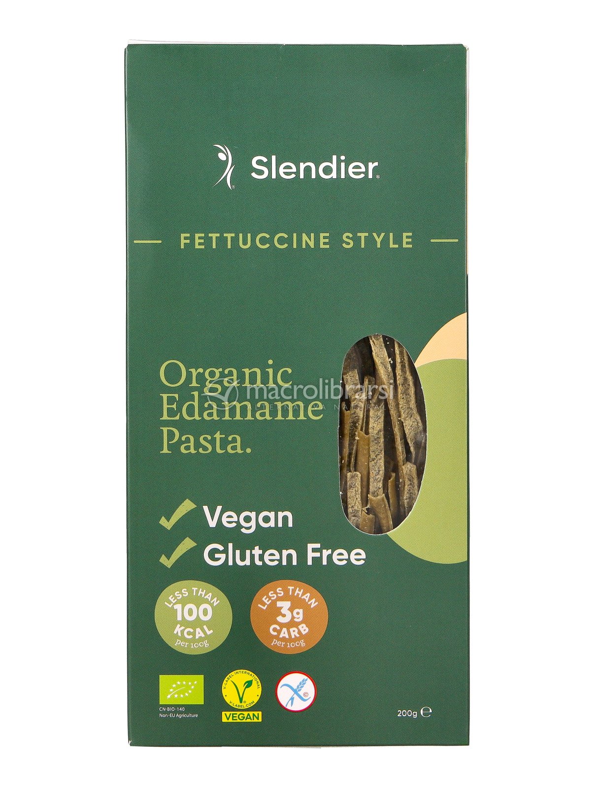 Deliziose fettuccine biologiche di Adamame a basso contenuto di carboidrati, fonte di proteine e fibre.