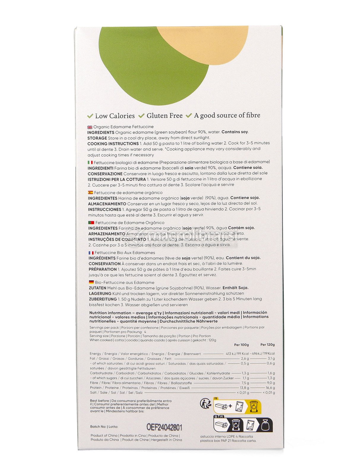 Realizzate con fagiolini di soia biologici, raccolti mentre sono ancora nei loro baccelli, queste fettuccine costituiscono una base favolosa per i piatti più deliziosi.