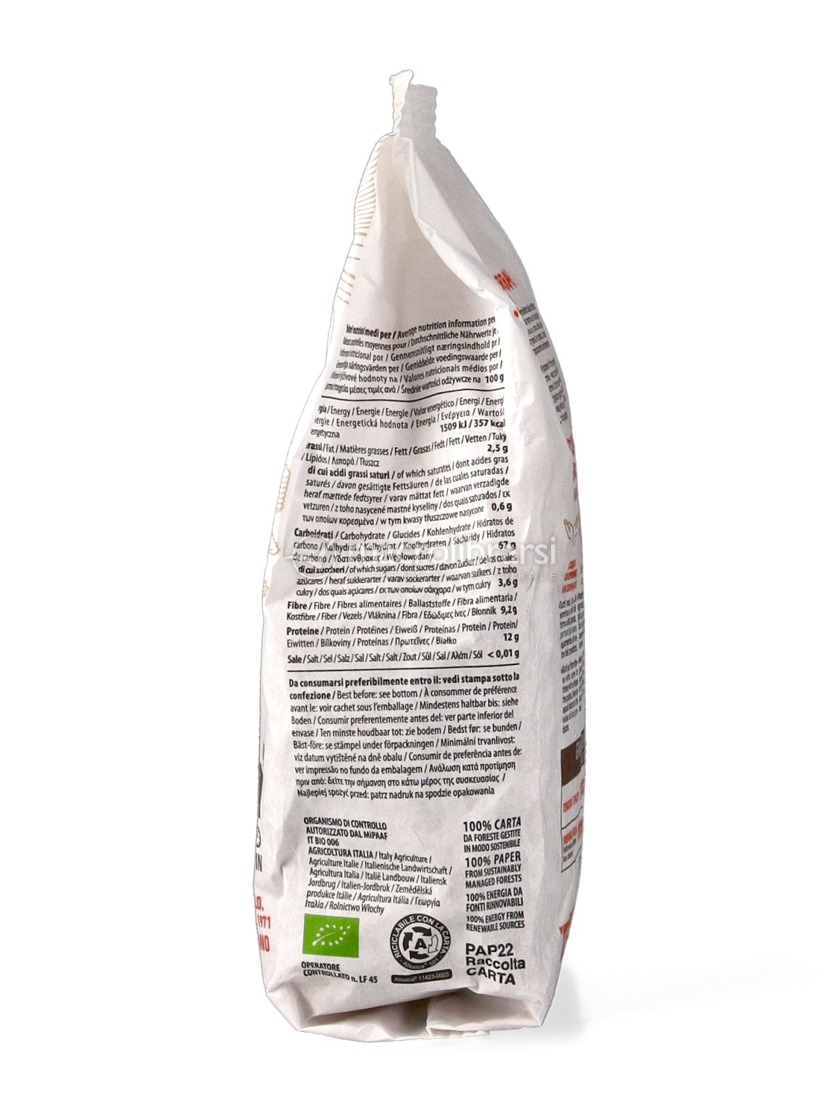 Valore energetico 1509 kJ / 357 kcal