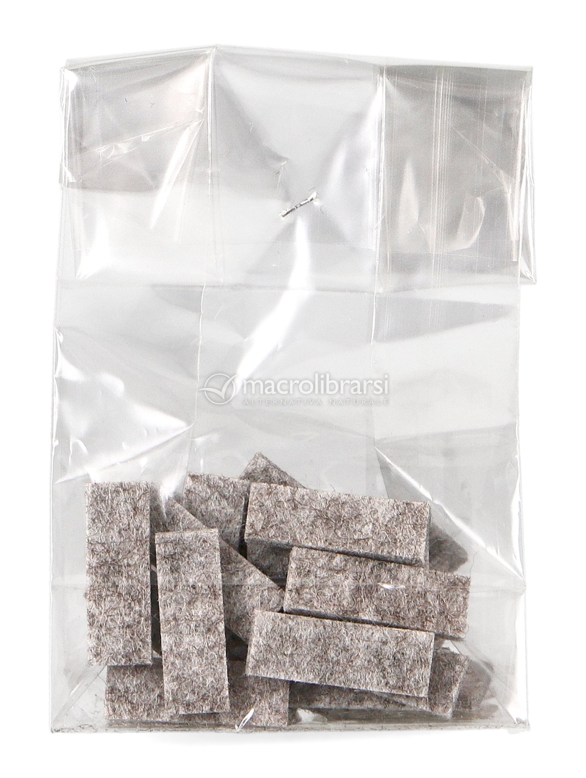 Una busta con numerosi tamponi che mi permette di cambiare profumazione al diffusore auto quando voglio. Dei feltrini che assorbono bene gli oli essenziali rilasciando poi un gradevole e delicato profumo